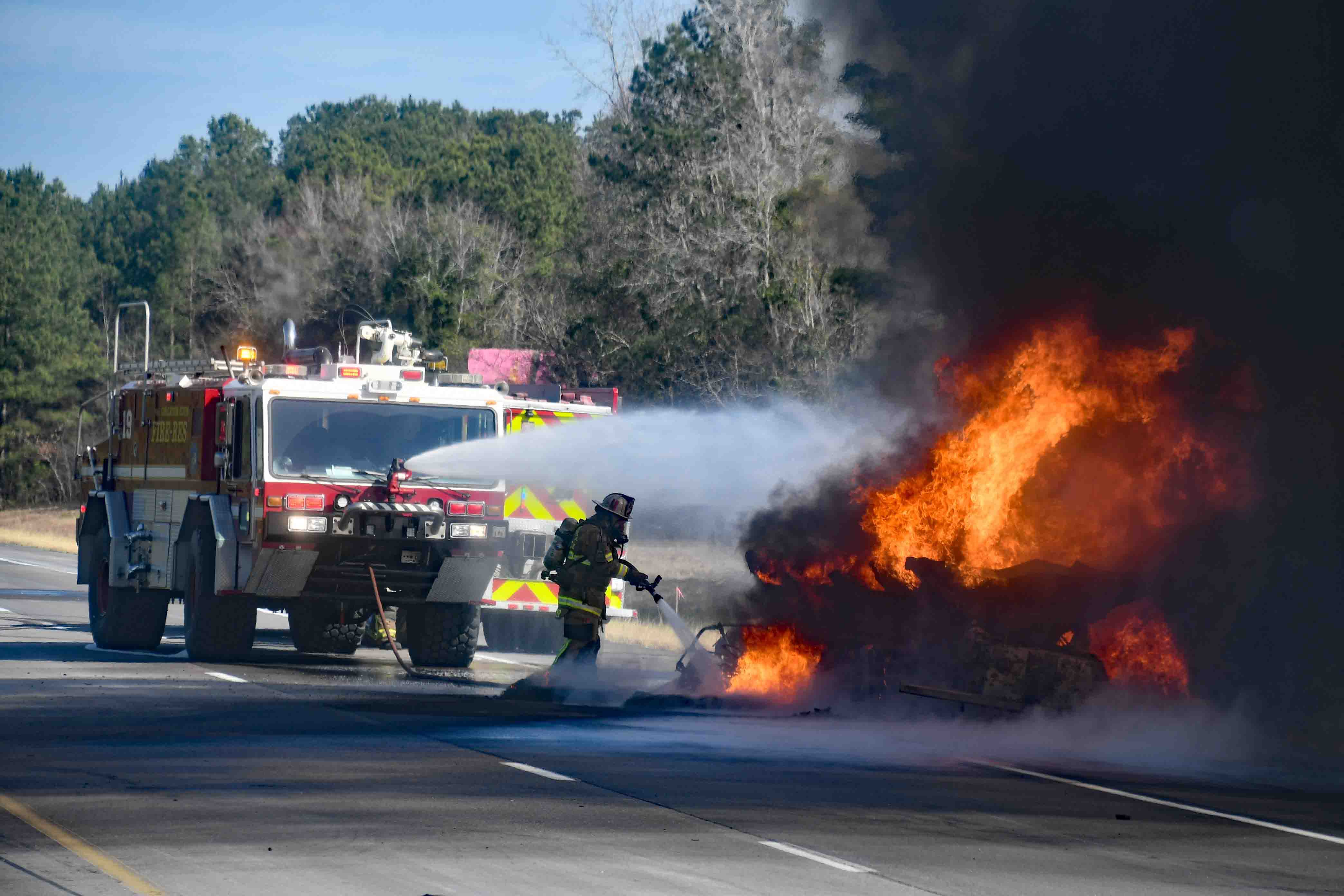 Dorchester County Fire-Rescue with a gasoline tanker fire on
