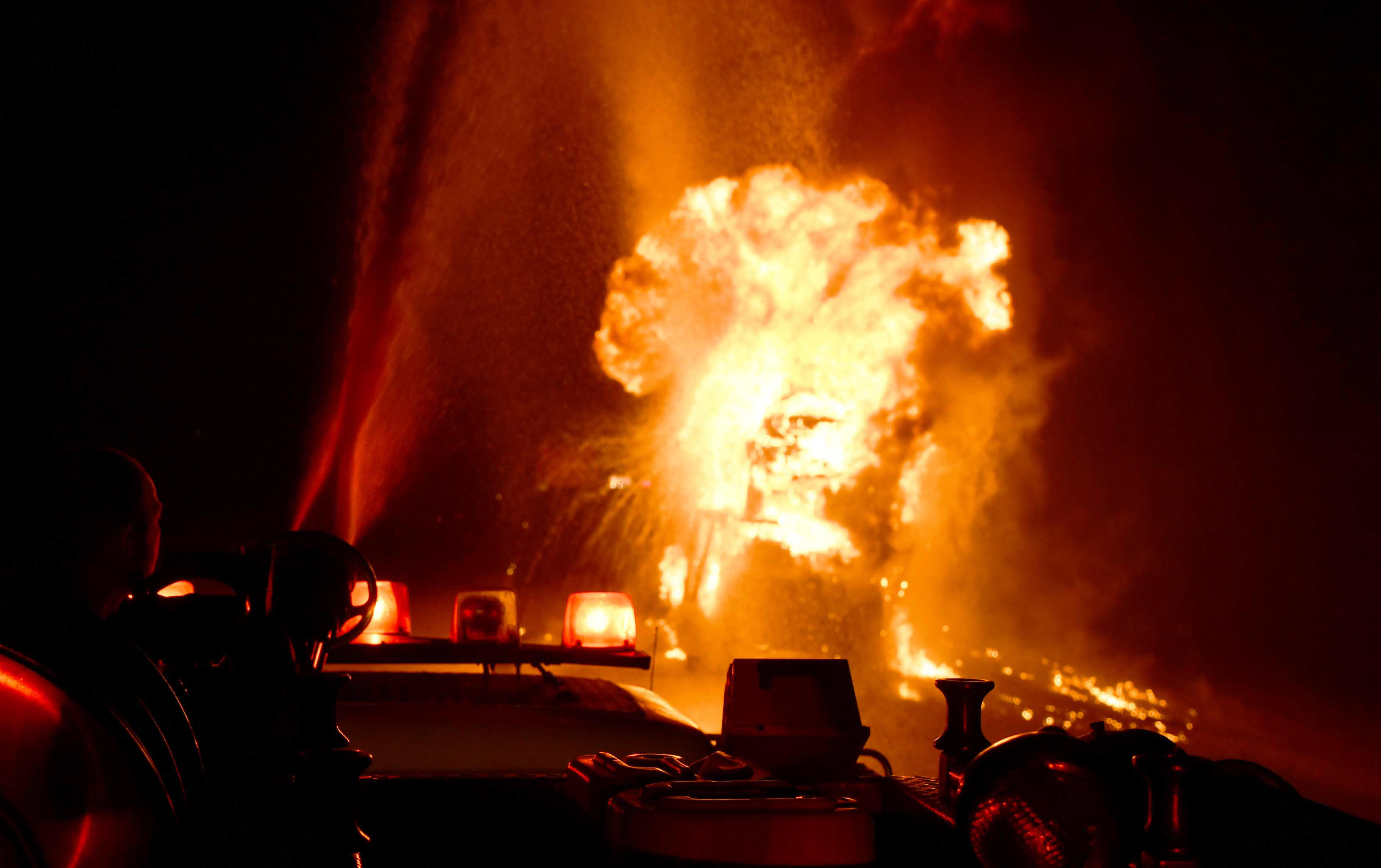 intense fire. Engine 1 use the deck gun to knock down the flames,