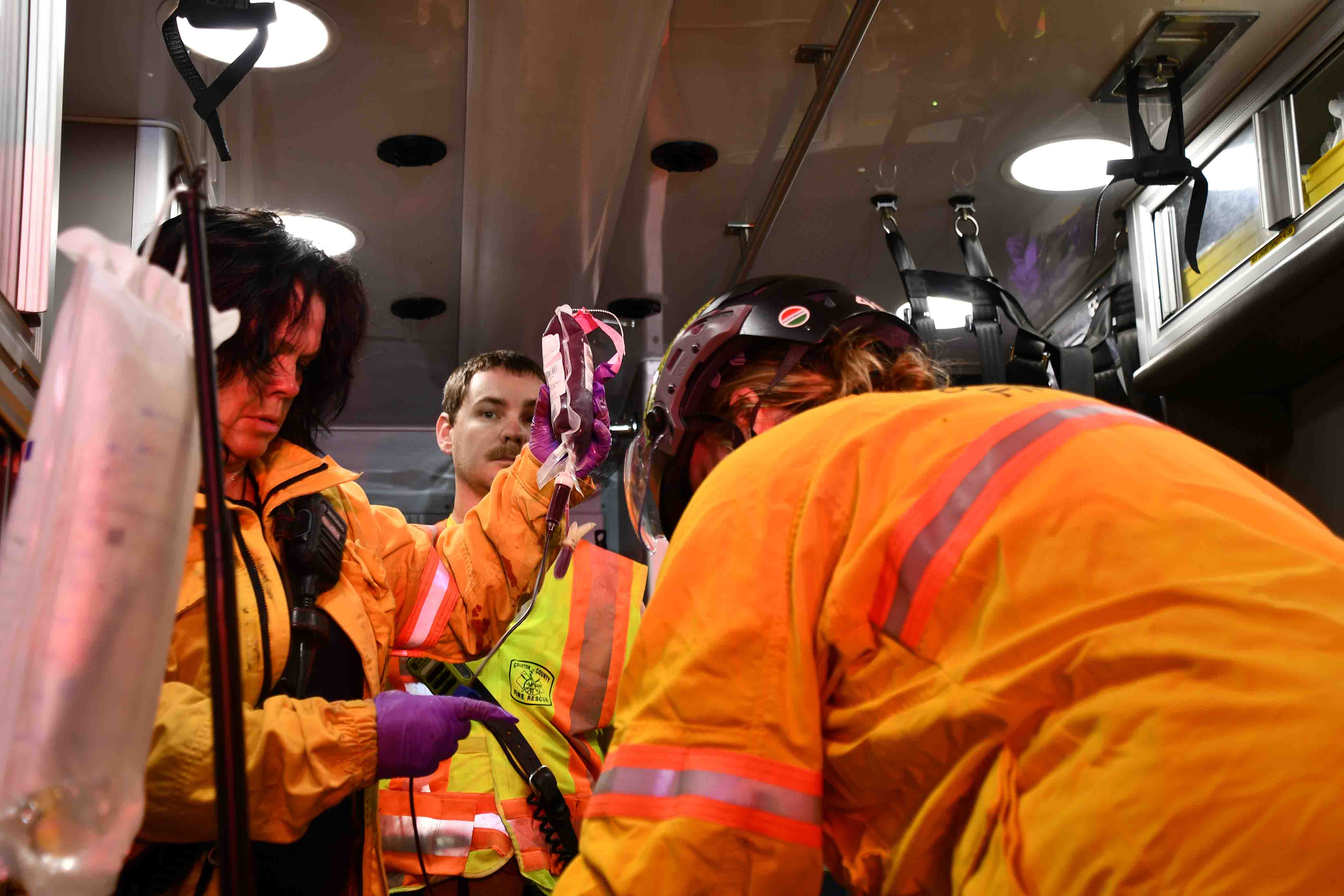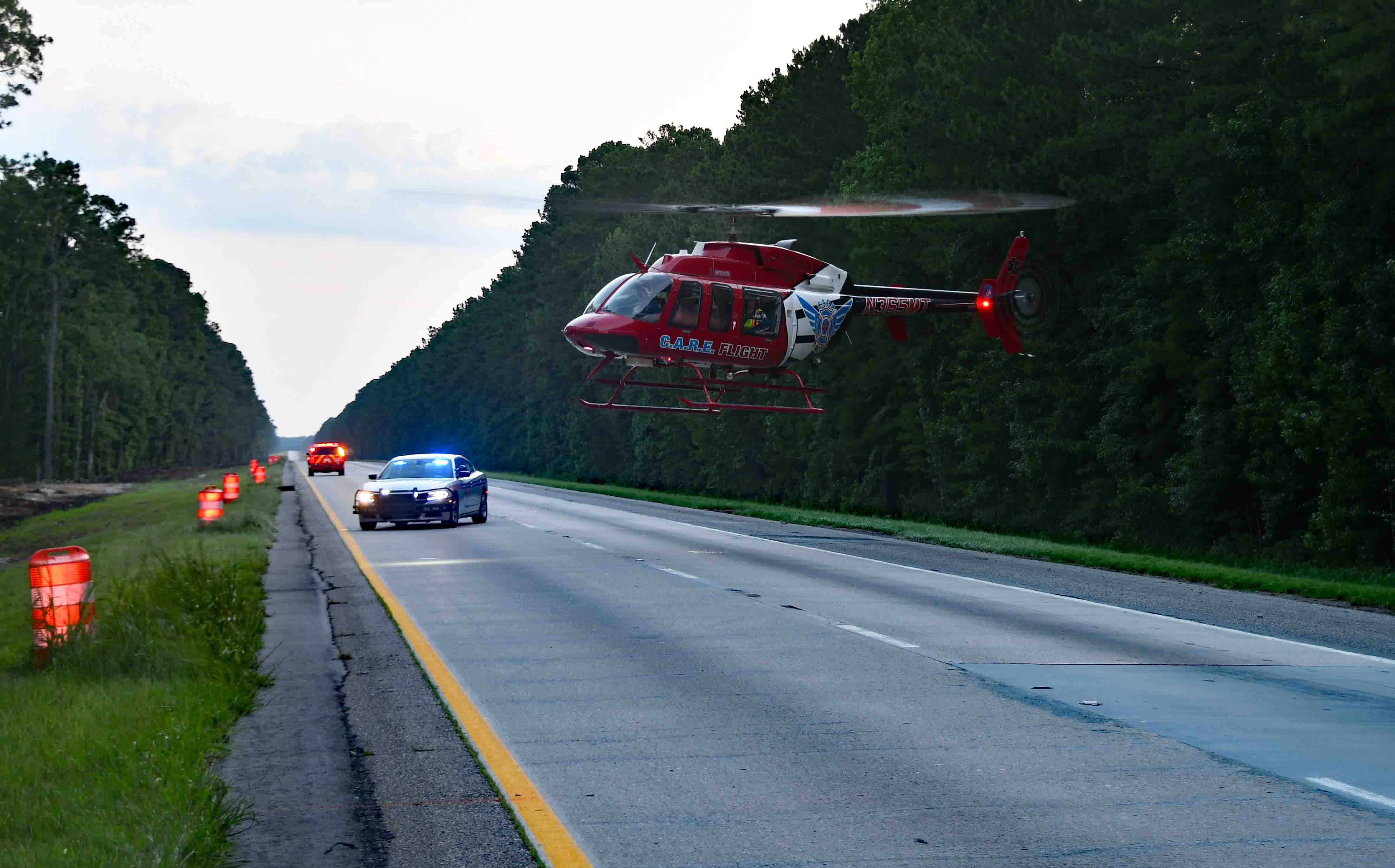 24/June/2025 - MVC with Entrapment and Air Evac - "B" Shift Incident # 25-05018 - At 05:12, Tuesday 24-June a northbound semi-truck left the roadway on Interstate 95 near the 60 mile marker and struck several trees in the median. The cab received heavy damage from the impact, but the front of the trailer failed and the load of 50 lb. bags of sugar were propelled forward crushing the cab from the rear. The unrestrained driver was partially ejected through the windshield, but was trapped in the wreckage as the cab was crushed. An off-duty Fire-Rescue Lieutenant arrived minutes later and began treating the unconscious driver who was hanging out of the windshield. Firefighter-Paramedics worked over 30 minutes using two sets of Holmatro Pentheon rescue tools, to extricate the man. ONe crew had to use ladders to reach the area of entrapment. He suffered severe, multiple injuries and was in critical condition. Crews treated his many injuries and administered life saving whole blood. A medical helicopter had been requested and the C.A.R.E. Flight helicopter landed on I-95 just north of the accident. The patient was transferred to the Flightcrew, then flown to the Trauma Center at HCA Trident Hospital in North Charleston. Traffic on I-95 backed up several miles and was detoured by Law Enforcement to Bells Hwy. The SC Hwy. Patrol is investigating the crash. Engine 1, Engine 26, Engine 27, Medic 1, Medic 26, Rescue 1, Battalion 1, Car 111 and Car 112 responded. Battalion Chief Brent Dalton served as Incident Commander. |