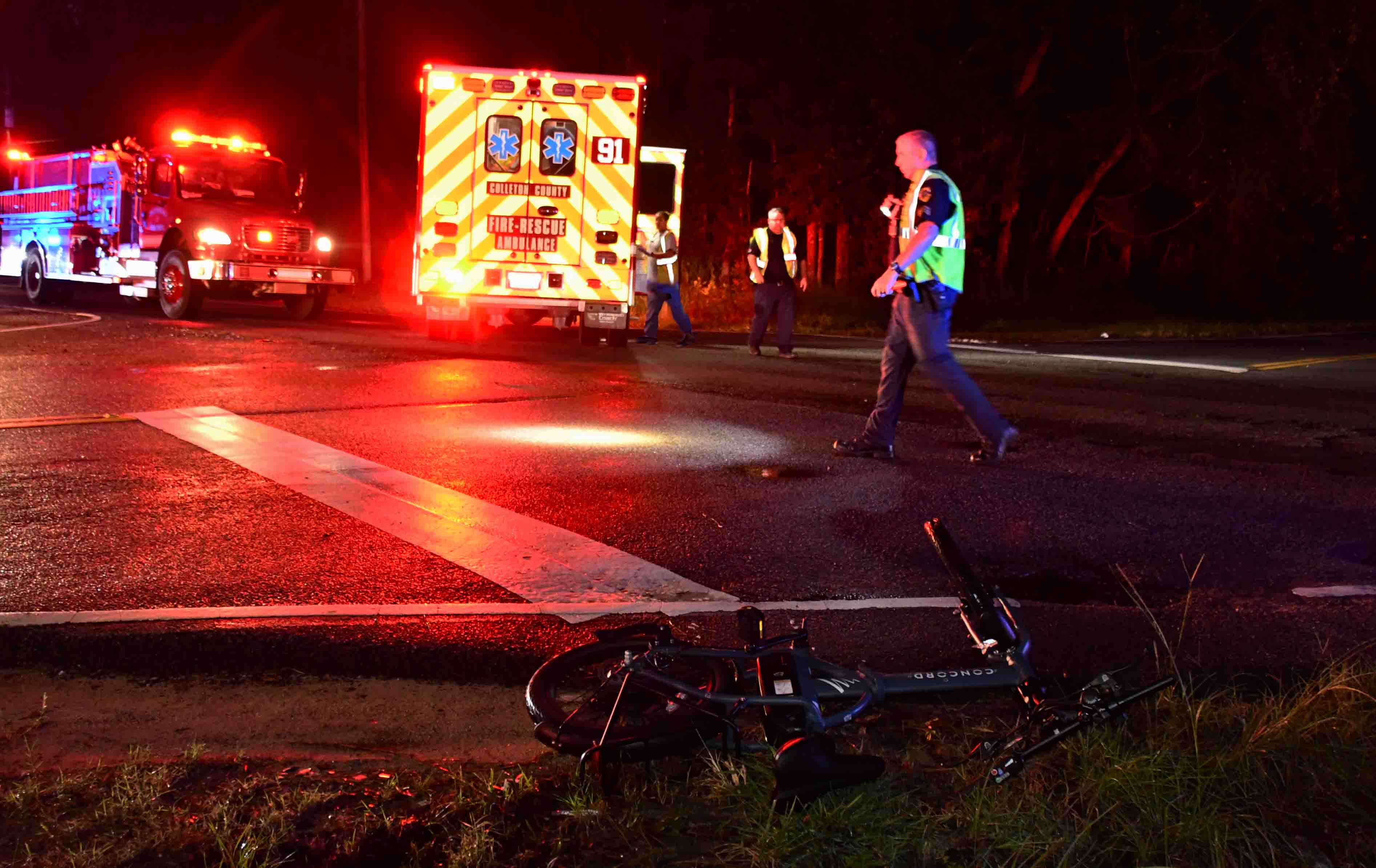 27/September/2025 - Auto vs Bicycle w Air Evac - "B" Shift Incident # 25-07620 - An adult male was seriously injured after he was struck by a car on Green Pond Hwy at the intersection of Beachwood Rd Saturday evening 27-September at 19:24. Witnesses advised the man was riding a dark colored bicycle eastbound on Beachwood Rd and failed to stop at the stop sign at Green Pond Hwy. He entered the path of a southbound sedan and was struck by the car. The man suffered multiple traumatic injuries, including several fractures. He was treated at the scene by Firefighter-Paramedics, then transported emergent to the CARE Flight base to meet with the medical helicopter. He was flown to the Trauma Center at HCA Trident Hospital in North Charleston. The driver of the sedan was not injured. The Walterboro Police Dept. is investigating the accident. Medic 1, Battalion 1, Car 111 and Walterboro Fire Dept responded. Battalion Chief Brent Dalton served as Incident Commander. |