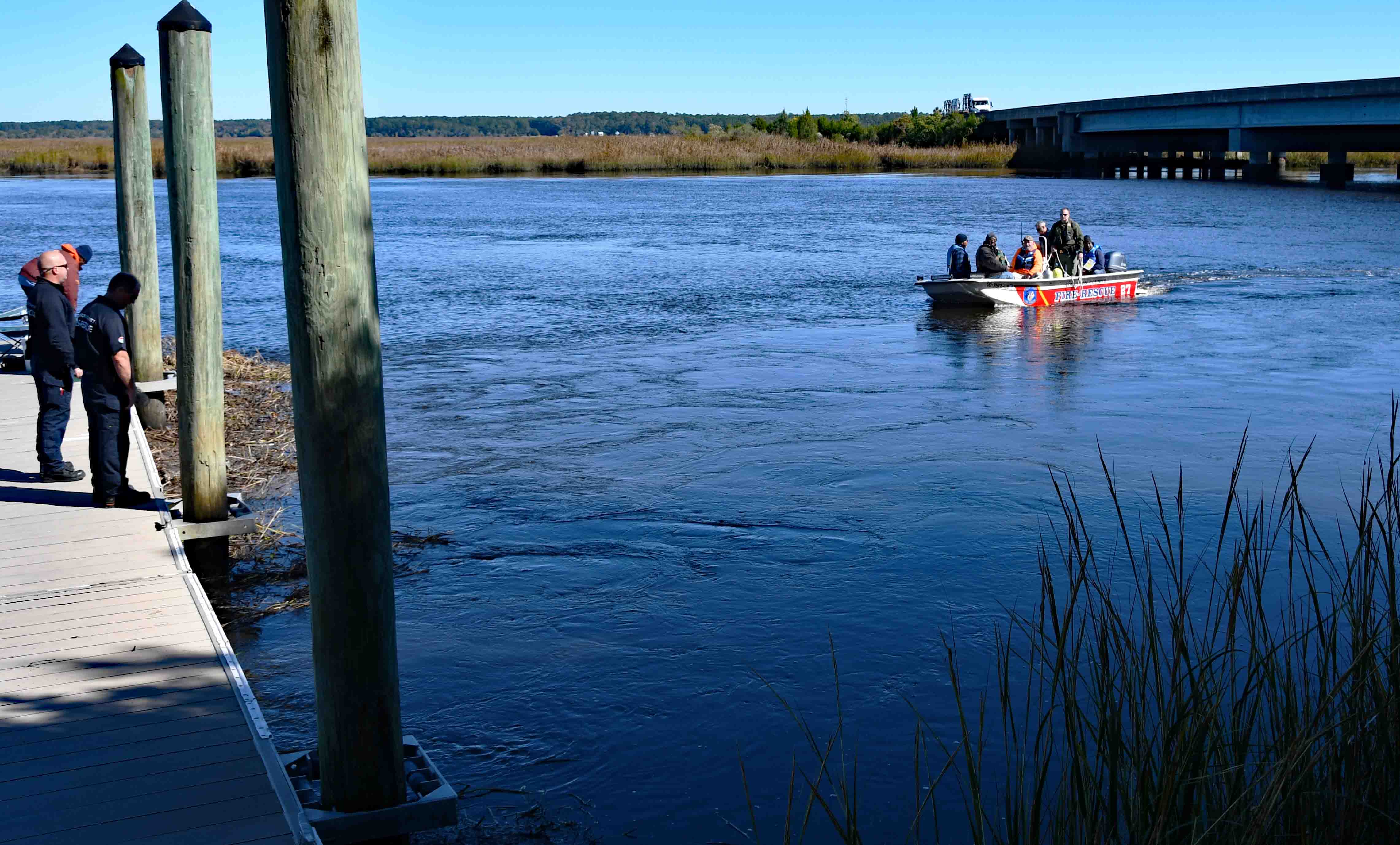 04/November/2025 - Water Rescue - "C" Shift Incident # 25-08778 - Four fishermen were rescued on the Combahee River Tuesday morning 04-November. At 11:23, Beaufort County 9-1-1 received a report of a disabled boat approximately 2 miles south of Steel Bridge Landing (US Hwy 17) on the Comabee River. The report indicated the boat became disabled and was taking on water. Assets from Beaufort and Colleton Counties, as well as DNR Officers responded. Colleton County Fire-Rescue Marine 27 and Beaufort Water Search & Rescue R-2 put in at the landing and traveled to the location. Marine 27 brought the fishermen safely back to the landing, while Beaufort Water S&R was able to make temporary repairs to the boat and tow it back to the landing. The fisherman had life vests and a working cell phone which allowed them to call for help. The cell phone provided the coordinates so responders could quickly locate them. No one was injured during the incident. Engine 6, Medic 6, Dive 1, Marine 27, Car 104, Car 107, Car 112, Battalion 1, Beaufort Water S&R, DNR and Sheldon Fire Department responded. Sheldon Fire served as Incident Command. |