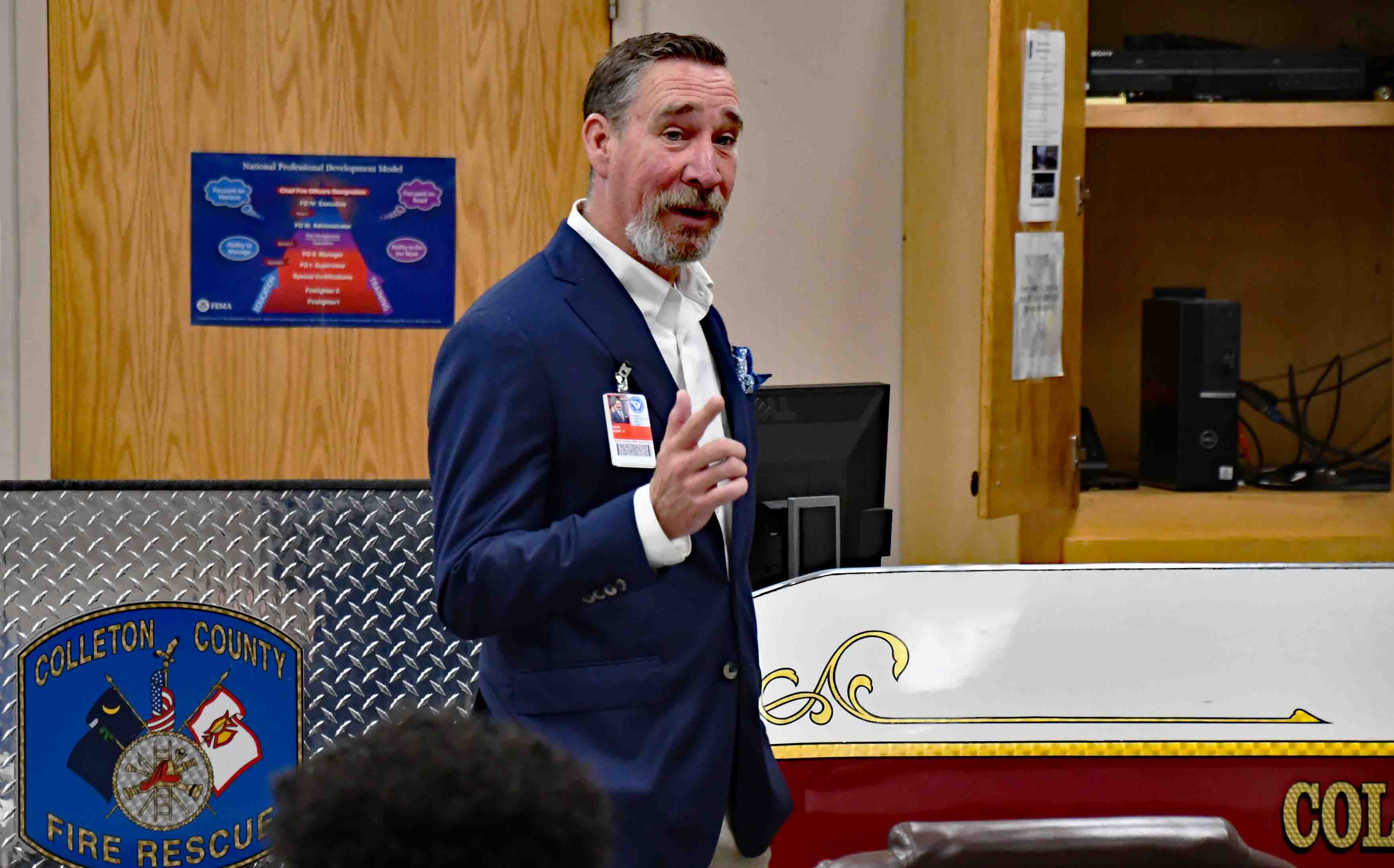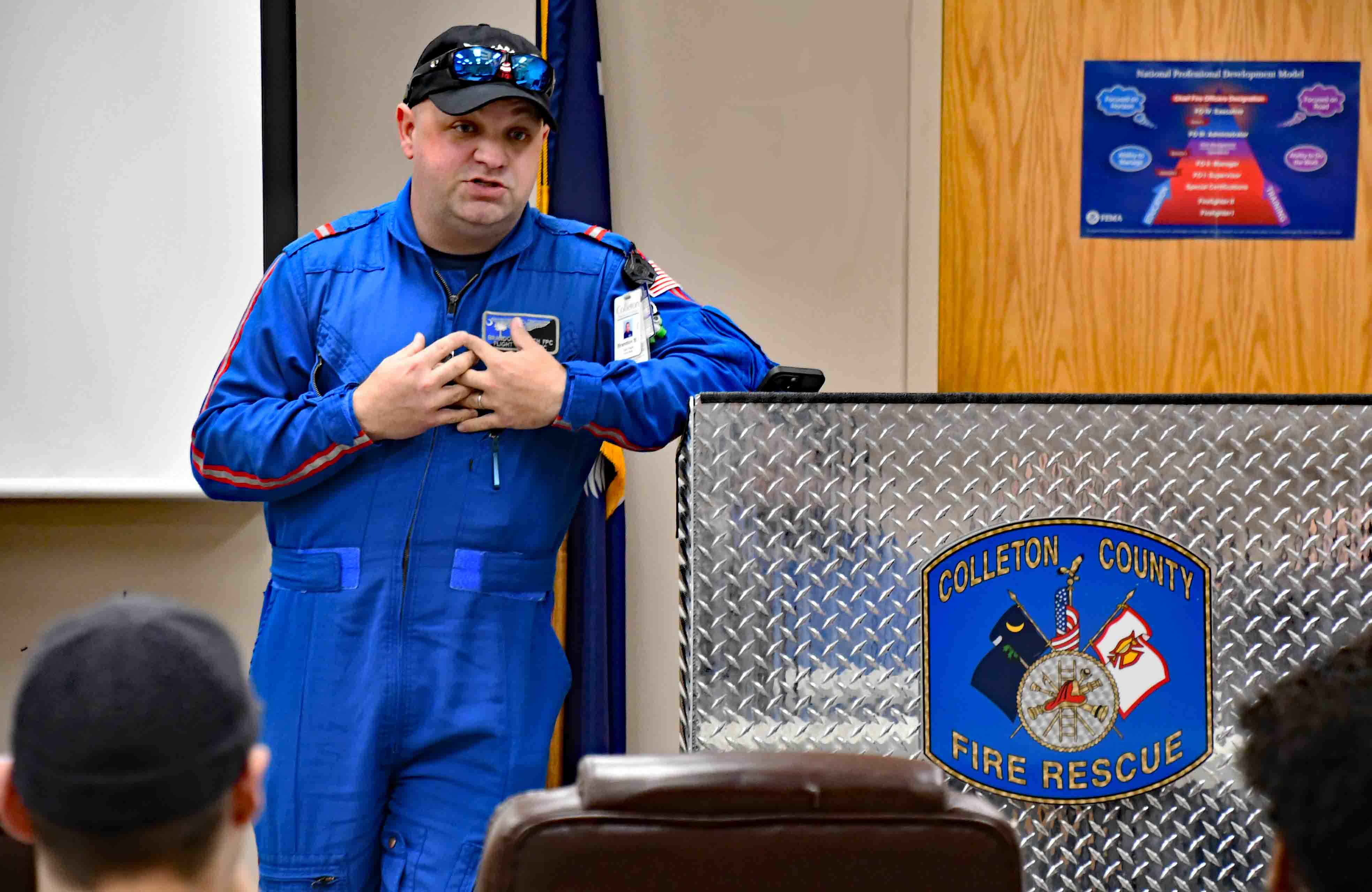 08/November/2025 - Explorer Anniversary Luncheon Fire-Rescue's Explorers met at Station # 19 to celebrate the 18th year of the Explorers. This year the group listened to three motivational speakers, Lee Stroud RN Director of Clinical Operations at HCA Colleton Hospital, Henry Lewis State EMS Asso Director and former Colleton Explorer, Firefighter-Flight Paramedic Lt. Brandon Broach with the CARE Flight program. Each discussed many aspects of dedication, training, education and passion for a career choice. Following the presentations, HCA Colleton CNO, Dr. Missy Feather, grilled hamburgers and hotdogs for the group. After lunch, everyone met on the training grounds for a game of kickball. The youth Explorers vs the adults. The adults were looking to reprise their three year winning streak. The youth members outnumbered the adults and the adults lost two players when Medic 19 received a response and had to leave. With only three remaining players, the adults still managed to closely pull off a win for the fourth straight year. The Firefighter Explorer Post is open to youths ages 14 to 17. They learn the firefighting/emergency medical trade and at age 16 can take some formal SC Fire Academy Training Courses. Anyone interested in the Explorer Program can contact Fire-Rescue Headquarters at (843) 539-1960. |