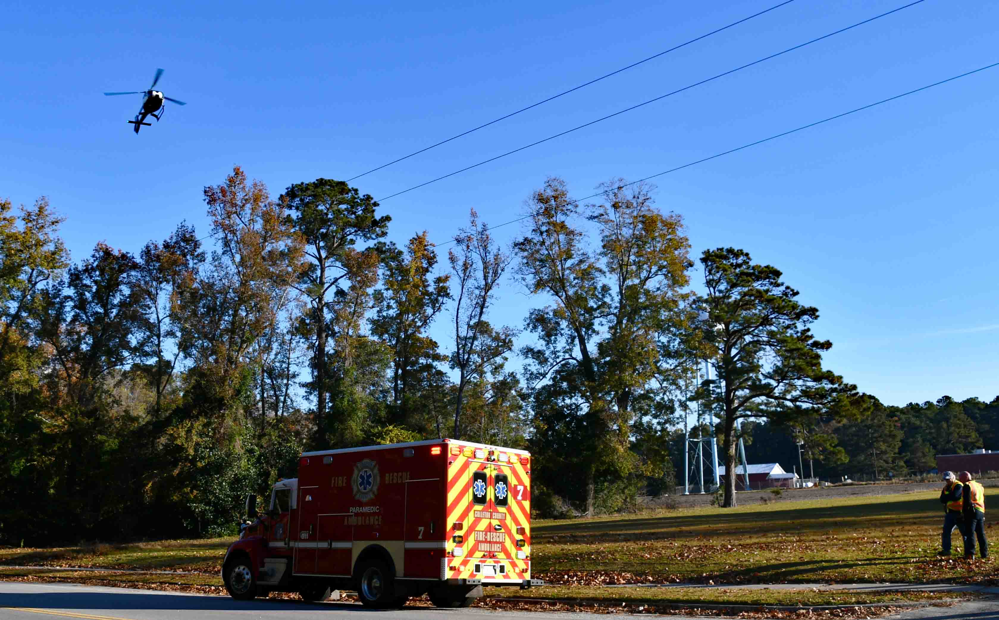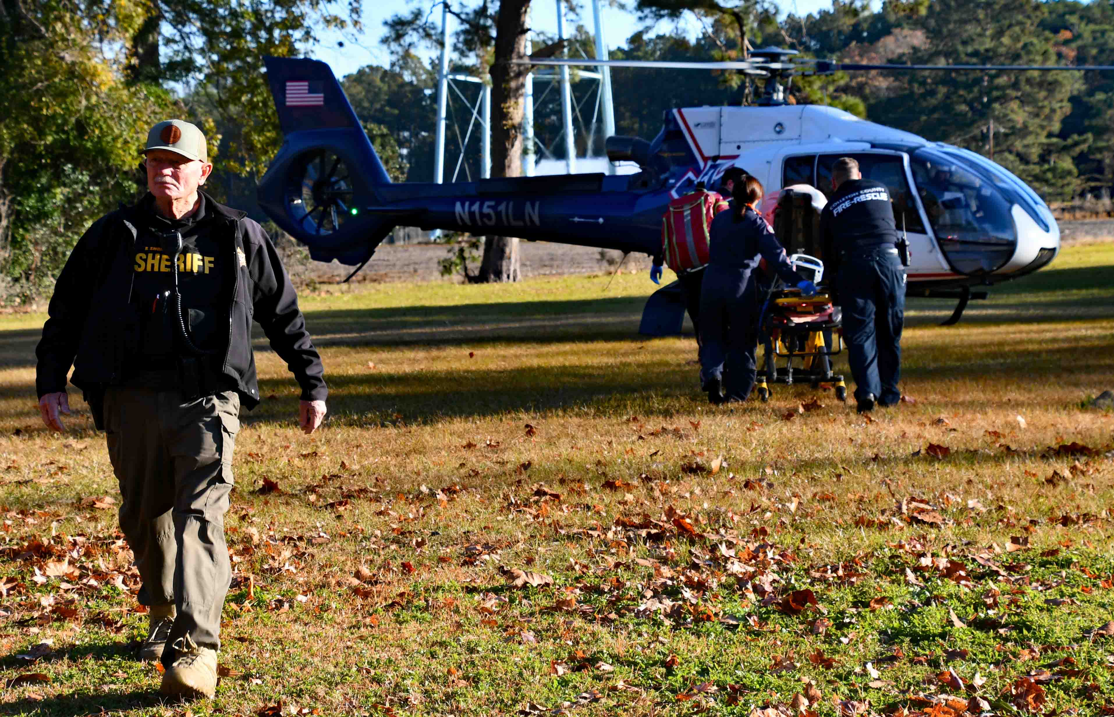 Incident # 25-09111 - An adult female was injured in a hunting accident near the Town of Smoaks Saturday morning 15-November. At 07:49 9-1-1 received the report of the woman who was shot in the face and arm with buckshot and she was being driven to Fire-Rescue Station # 7 in Smoaks. Firefighter-Paramedics reported minutes later that the patient had arrived. They began treating her in Medic 7 and requested a medical helicopter. A medical helicopter from Orangeburg responded and landed in a nearby field. The patient was transferred to the Flightcrew, then flown to the Trauma Center at HCA Trident Hospital in North Charleston. The Colleton County Sheriff's Office and SCDNR are investigating the accident. Engine 7, Medic 7, Car 111 and Car 118 responded. Commissioner David Sauls served as Incident Commander. |
