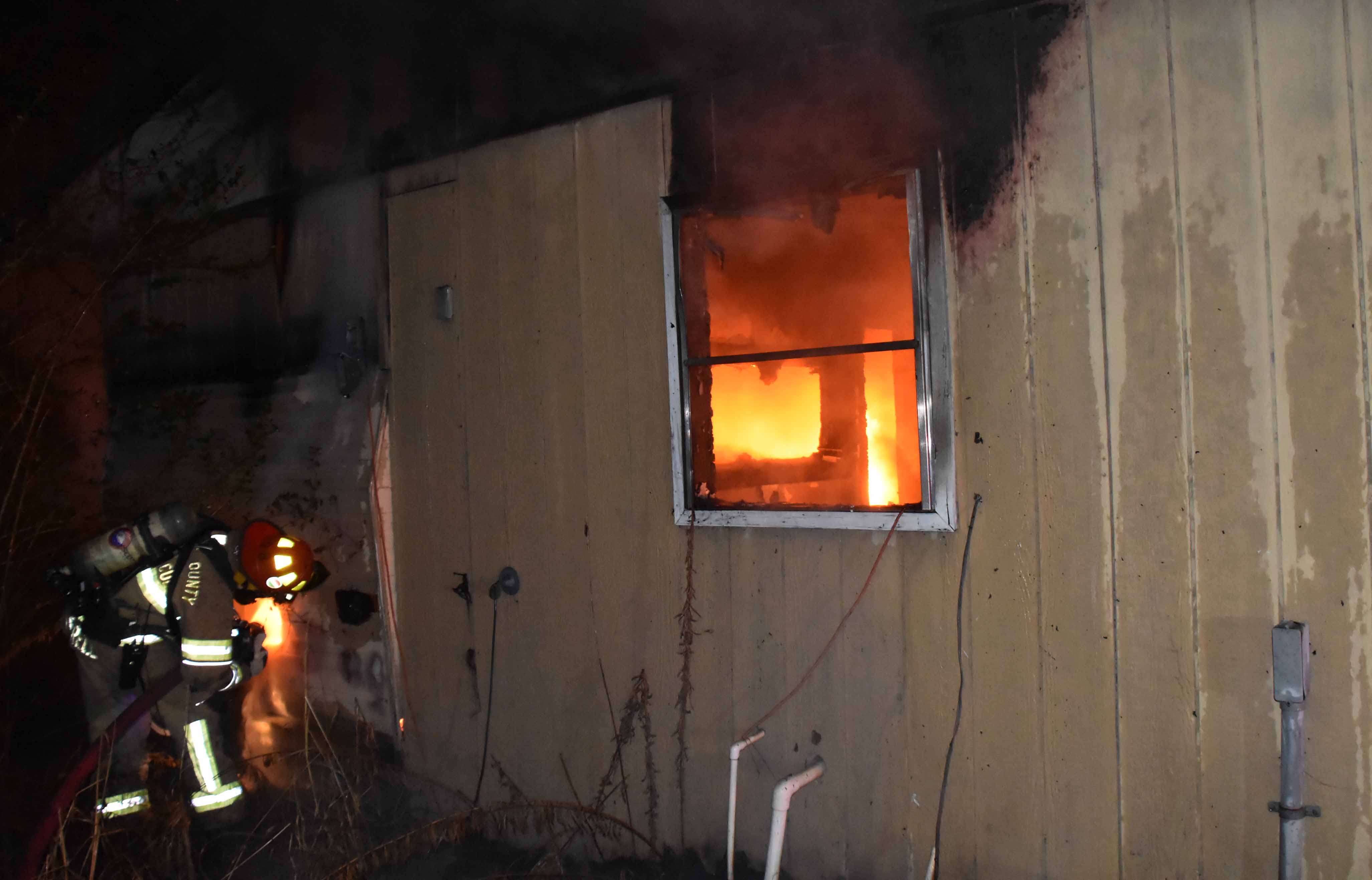 03/January/2026 - Structure Fire - "A" Shift Incident # 26-00105 - A passing motorist reported a building fire at the intersection of Hendersonville Hwy (US Hwy 17-A) and Ritter Road Saturday evening 03-January at 19:09. Engine 1 arrived to find the single story building well involved. It was located well off of the road. The building was an addition to an older camper. No one was at home when the fire occurred. Firefighters deployed two handlines to the building and entered the structure through the front door. The roof had already burned off most of the addition and already gutted the interior of the camper. Crews worked for approximately 20 minutes to extinguish the fire and were on the scene for two hours performing overhaul. Water supply was conducted using Tenders. The cause of the fire is under investigation. Photos by Harold Buzzell Engine 1, Engine 25, Tender 1, Tender 8, Tender 27, Medic 1, Medic 13 and Battalion 1 responded. Battalion Chief Scott O'Quinn served as Incident Commander. |