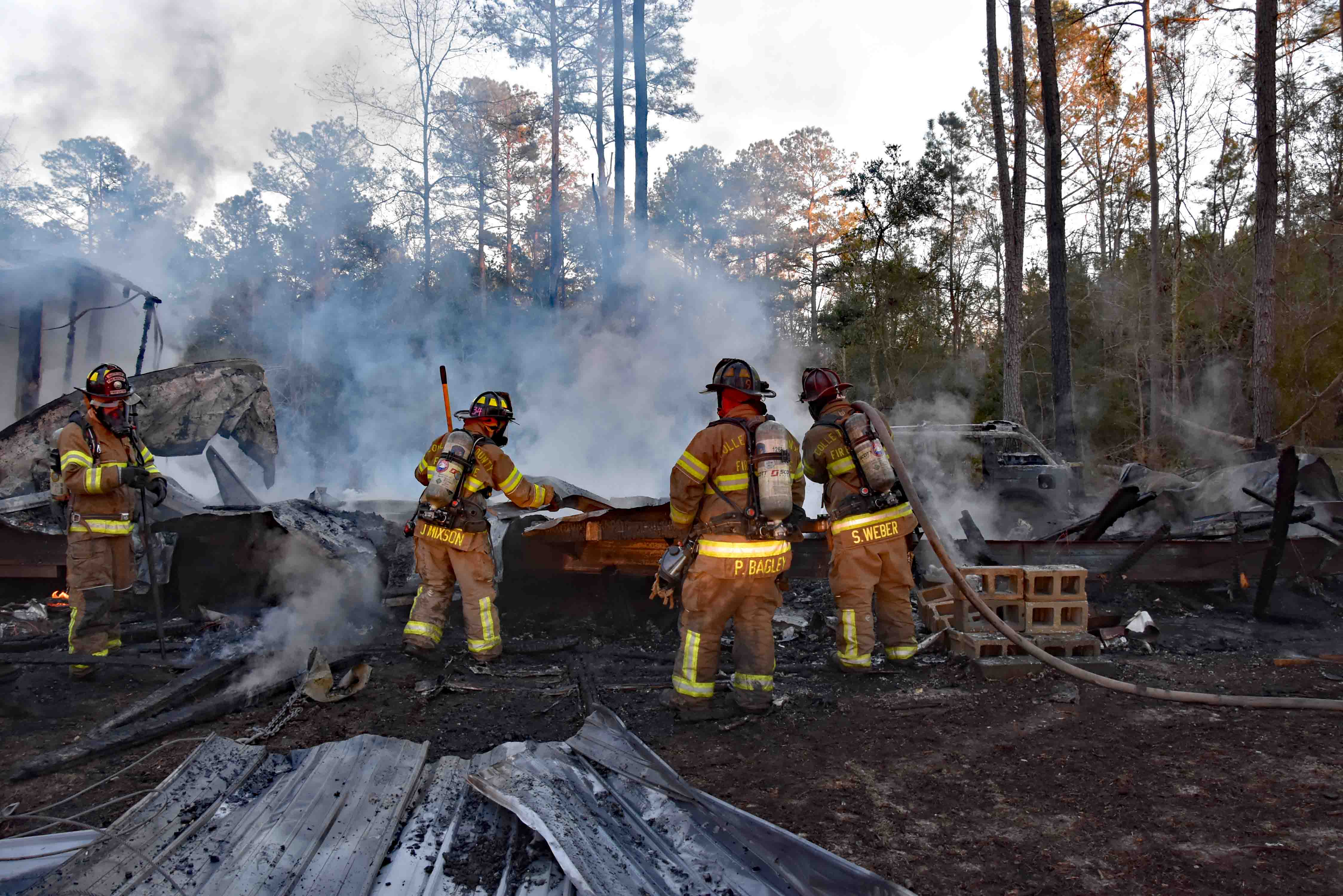 07/February/2026 - Structure-Woods Fire - "C" Shift Incident # 26-01051 - A single wide mobile, a vehicle and approx. 1-1/2 of woods was destroyed in an afternoon fire in the 200 block of Dicks Hill Road Saturday 07-Feruary at 17:12. Engine 1 arrived to find the mobile home approximately 75% involved and half of the structure had already collapsed. The surrounding woods and a Jeep were also on fire. Two other vehicles were also damaged from heat. Firefighter-Paramedics deployed three handlines to extinguish the fires. Tenders supplied water for the firefighting effort. Crews had the bulk of the fire knocked down in about 20 minutes, but were on the scene for two hours performing overhaul. No one was at home when the fire occurred. The fire is believed to have started from an unattended burn barrel next to the mobile home. Dry conditions and light winds spread the fire. Engine 1, Engine 27, Tender 1, Tender 8, Tender 19, Tender 26, Tender 27, Medic 1, Medic 19 and Battalion 1 responded. Captain Matt Smart served as incident Commander. Photos by Harold Buzzell |