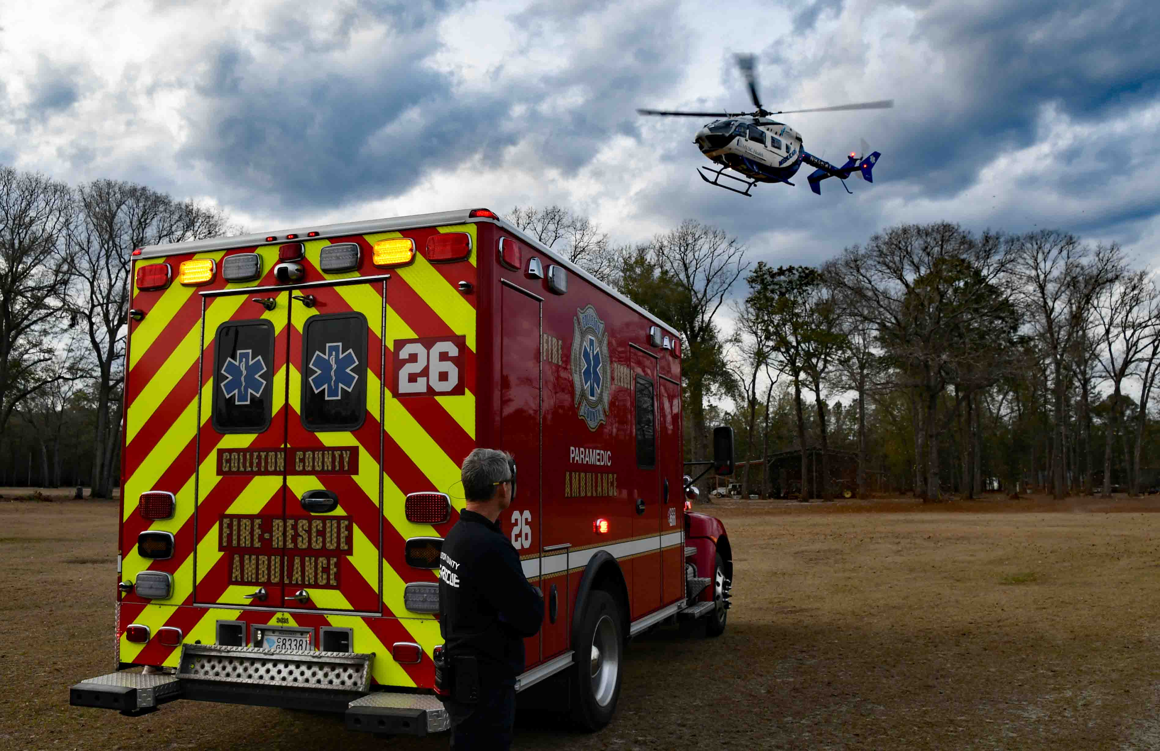 25/February/2026 - ATV Accident with Air Evac - "C" Shift Incident # 26-01596 - A 16 year old suffered traumatic injuries in an ATV accident Wednesday afternoon 25-Feb at 16:27. The accident occurred at a residence in the 700 block of Haymakers Lane off of Jones Swamp Road. The caller to 9-1-1 reported the large ATV rolled over onto the juvenile. Firefighter-Paramedics treated the teenager at the scene and requested a medical helicopter to respond. Meducare flew to the location and landed in a field at accident site. The patient was transferred to the Flight crew, then flown to the Shaun Jenkins Children's Hospital at MUSC in Charleston. Engine 26, Medic 26, Battalion 1 and Car 112 responded. Battalion Chief Chris Jones served as Incident Commander. |