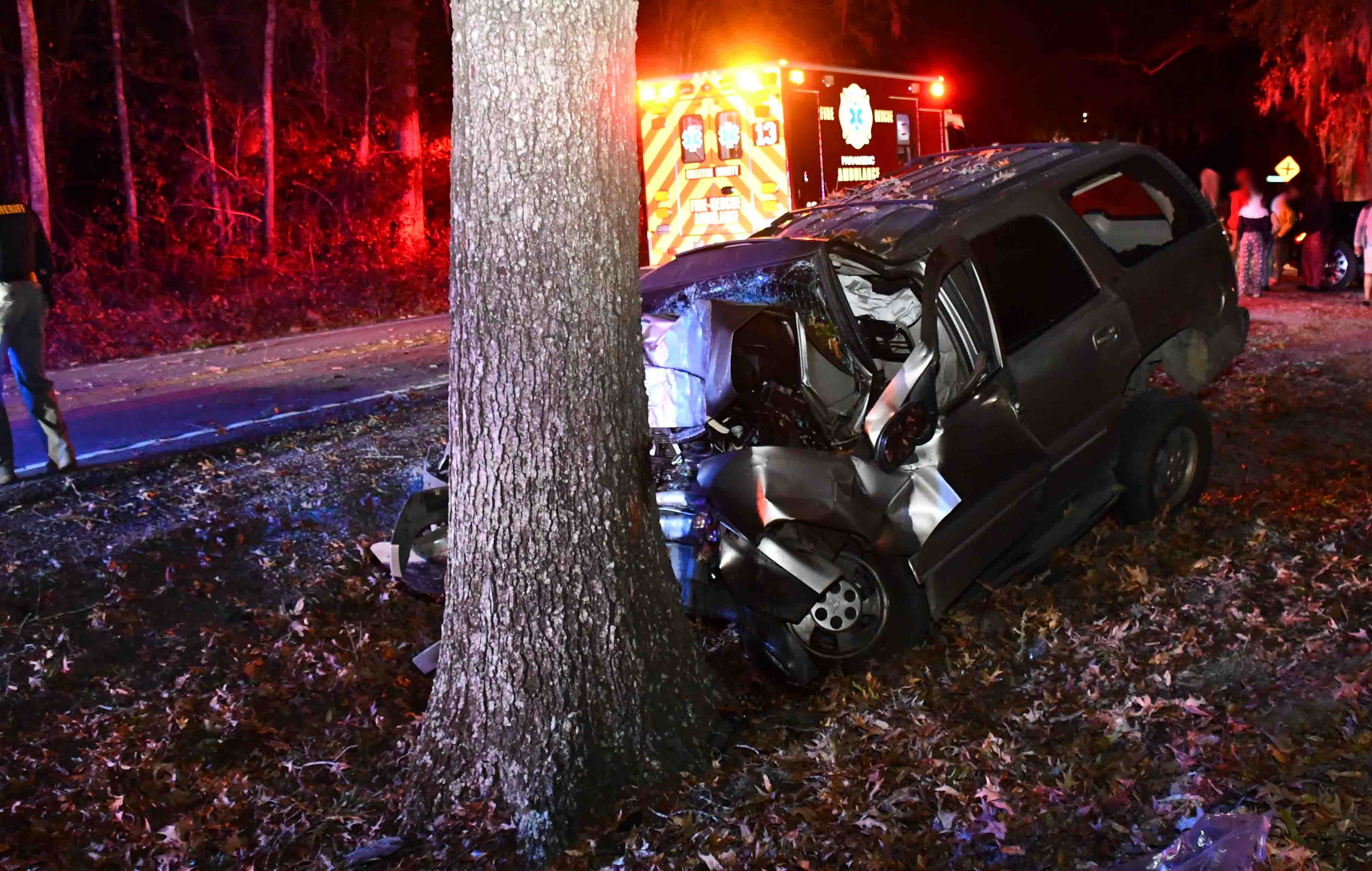 the roadway and struck a tree at a high rate of speed. The driver