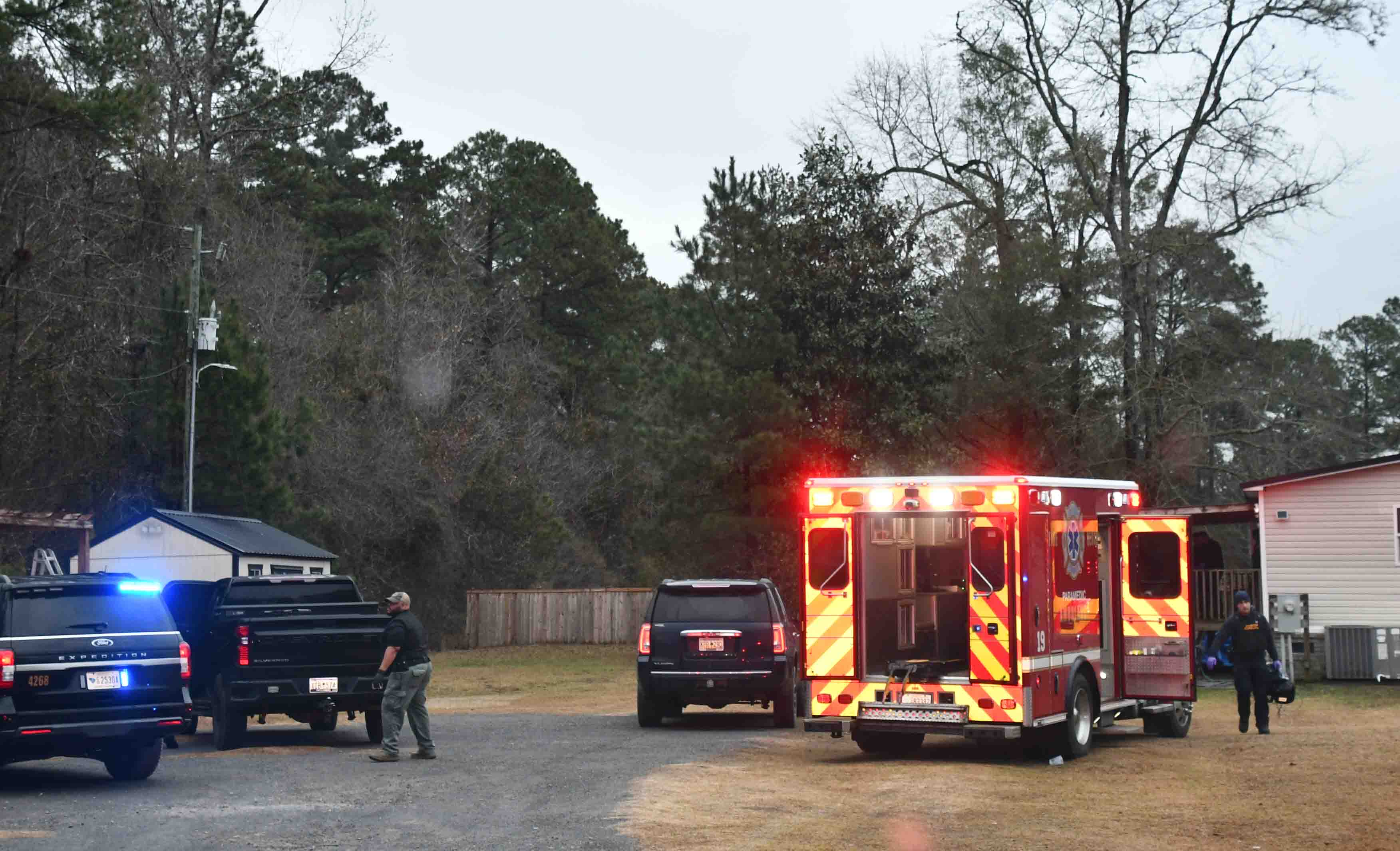 and a shed at a residence in the 13800 block of Mount Carmel Road