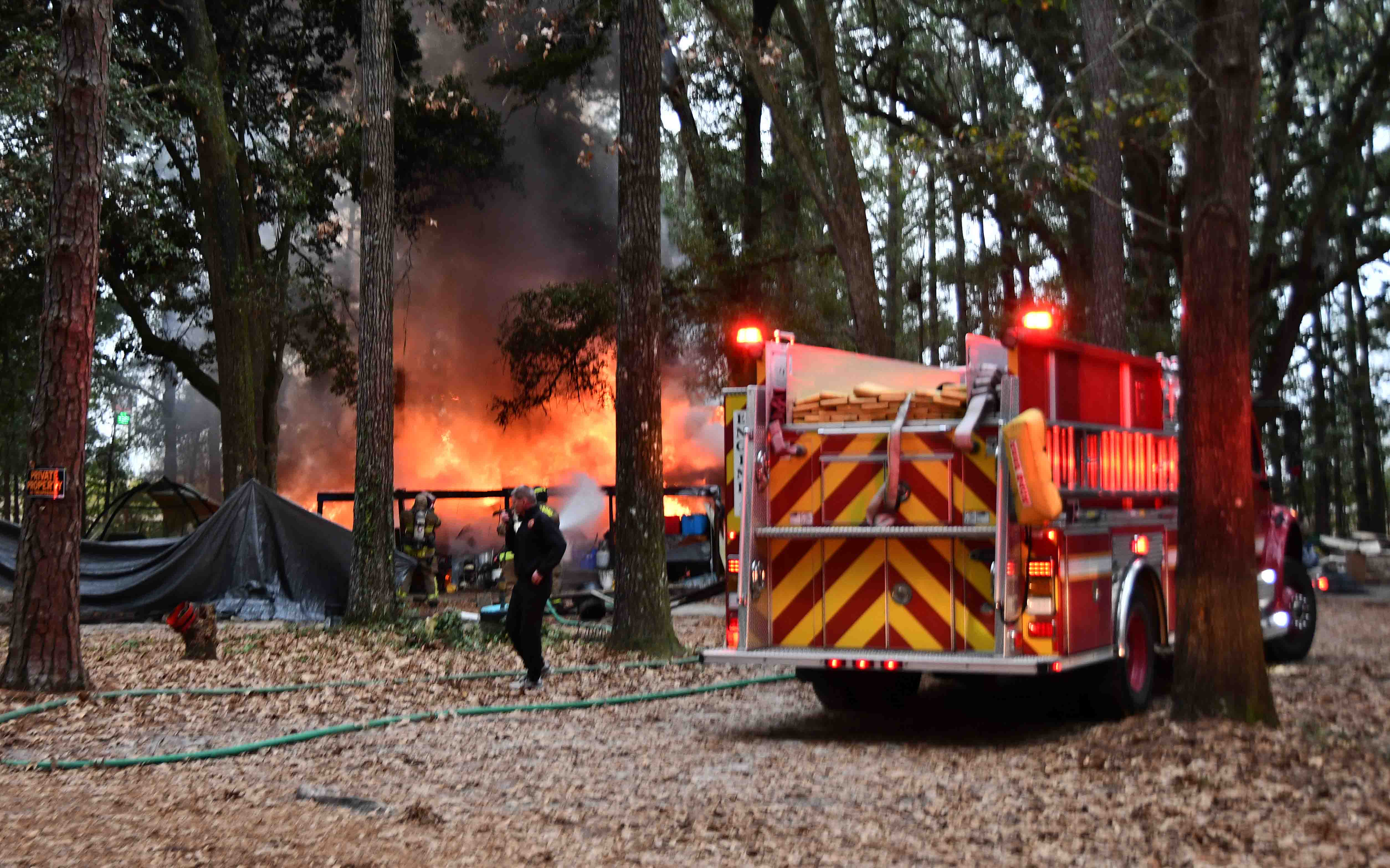 home when the fire occurred. Firefighters deployed two handlines to