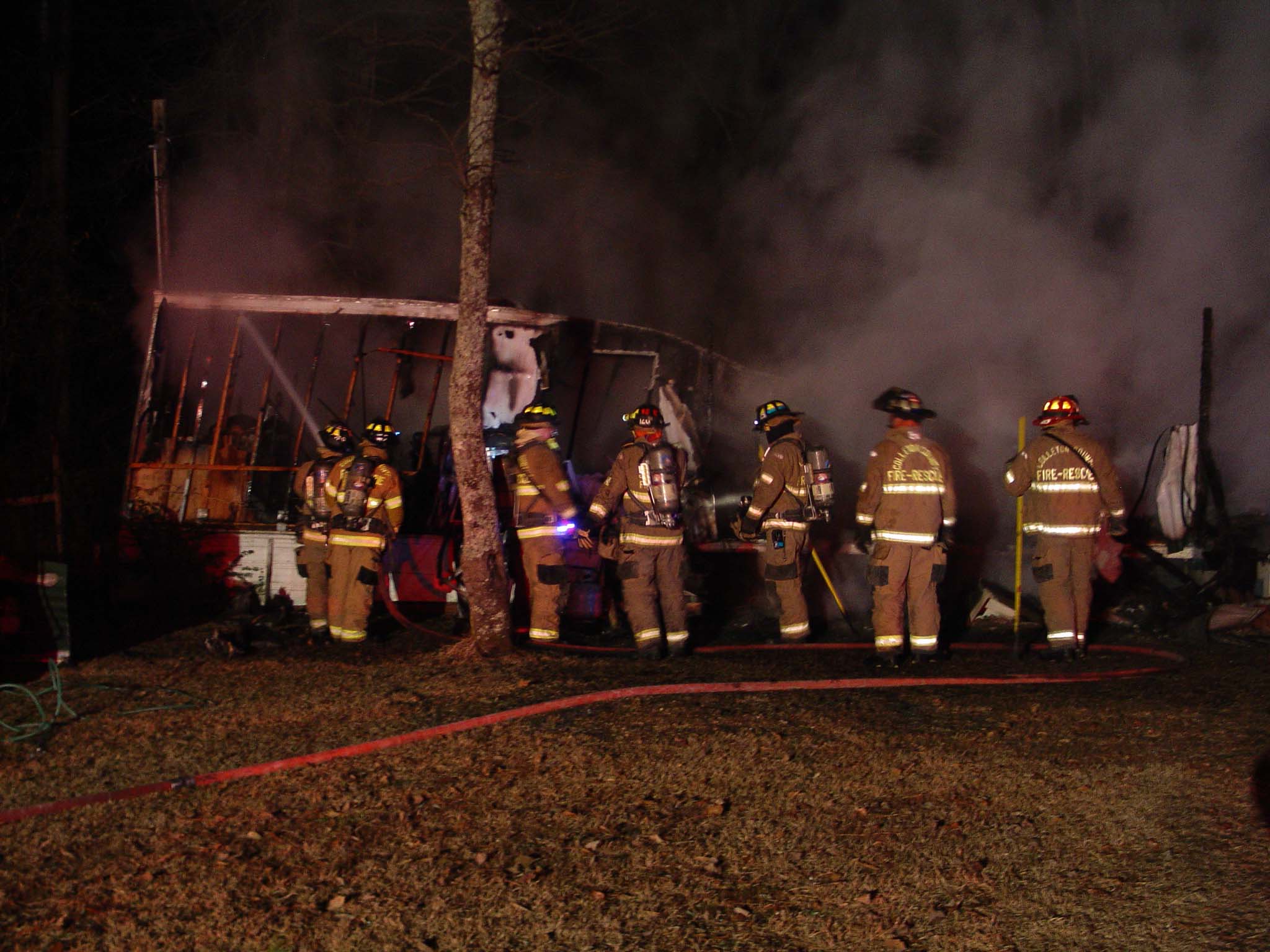 01/13/2011 A Shift Structure Fire Incident # 11-000269 A 70 year old Cottageville man dove from a window to escape his burning structure Thursday evening 13-January. At 23:24 9-1-1 Operators received several reports of a singlewide mobile home with flames coming from the structure at 275 Brocktown Road. Engine 9 and Medic 9 arrived minutes later to find the dwelling fully involved. Firefighters deployed two 1-3/4 handlines knocking the flames down in about 15 minutes. The building suffered extensive damage and destroyed the mans belongings. He received non-life threatening traumatic injuries during his escape. He was treated at the scene by Firefighter-Paramedics, then transported to Colleton Medical Center in Medic 9. He was released later in the day. Units remained on the scene for several hours and the cause of the fire is still under investigation. Engine 9, Engine 11, Tender 9, Tender 19, Tender 27, Medic 9, Medic 19, Battalion 1 and Car 118 responded. Battalion Chief Brent Dalton served as Incident Commander. |