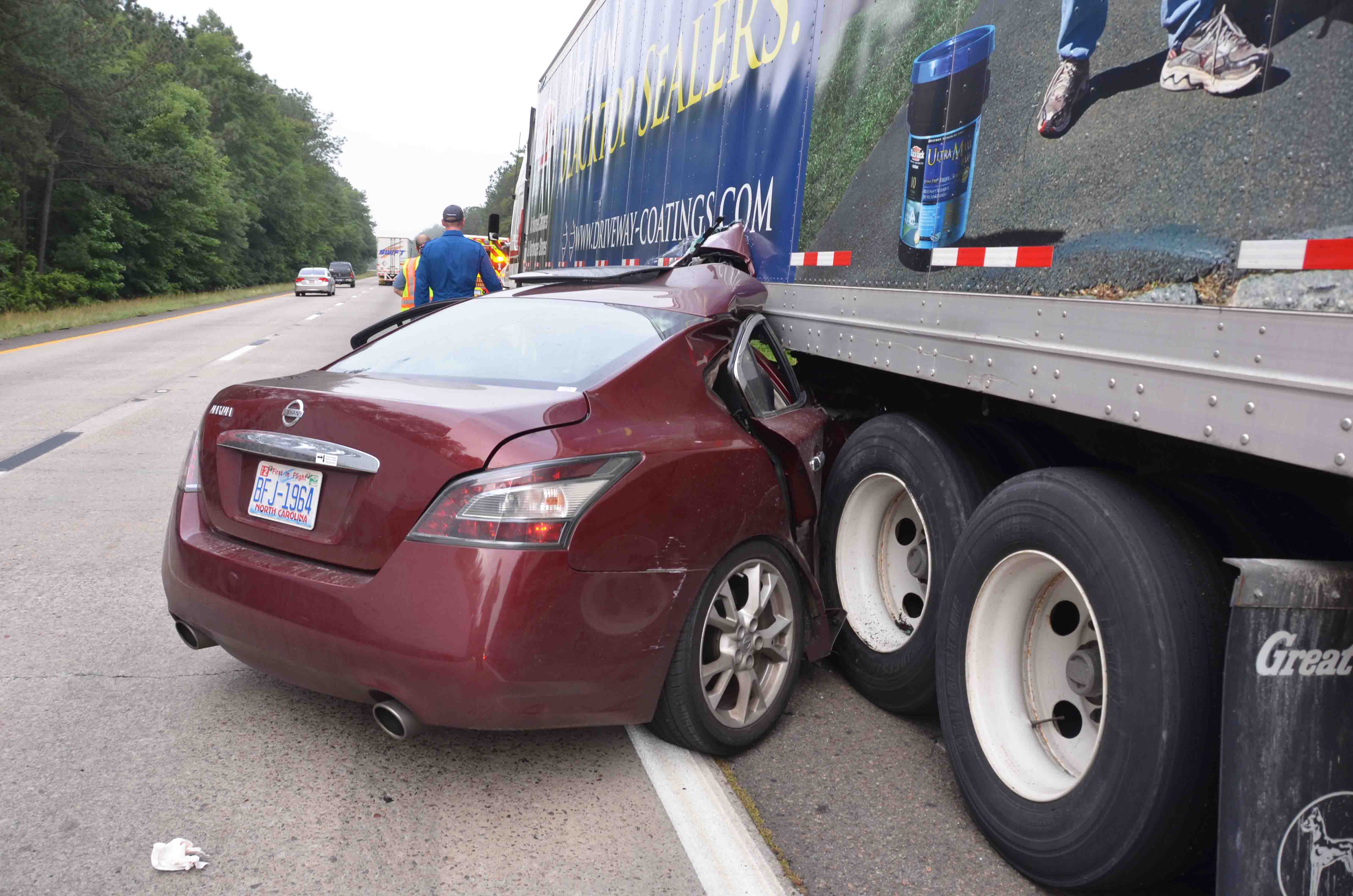 23/May/2013 High Speed MVC A Shift Three Philadelphia men fortunately survived a harrowing collision with a tractor trailer Thursday morning 23-May. The accident occurred at 07:58 on I-95 near the 44 mile marker southbound. The three men were riding in a Nissan Maxima when the driver lost control, entered the median and overcorrected. As the car came back on the roadway it drove under the trailer... click here for additional information.