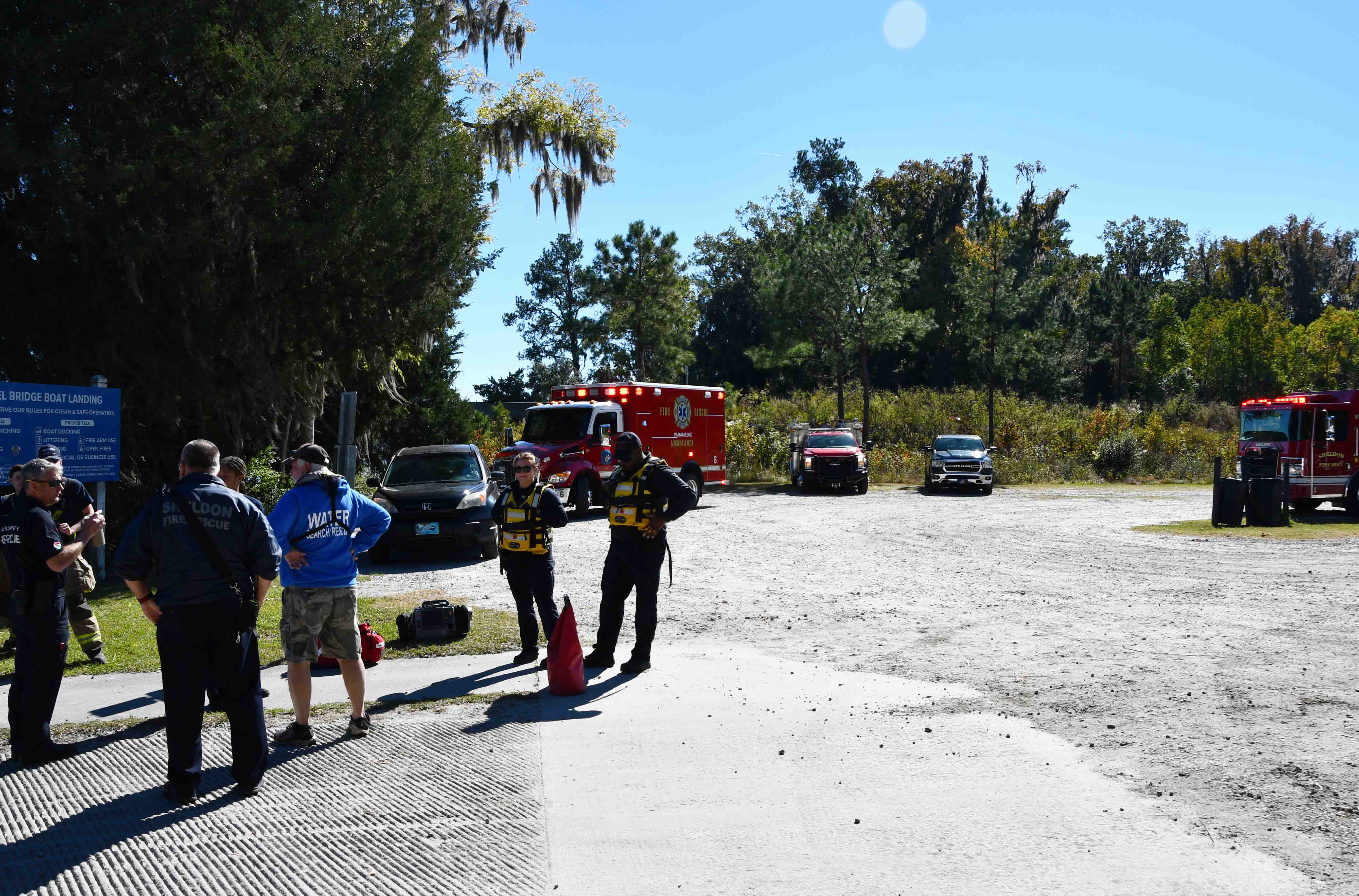 04/November/2025 - Water Rescue - "C" Shift Incident # 25-08778 - Four fishermen were rescued on the Combahee River Tuesday morning 04-November. At 11:23, Beaufort County 9-1-1 received a report of a disabled boat approximately 2 miles south of Steel Bridge Landing (US Hwy 17) on the Comabee River. The report indicated the boat became disabled and was taking on water. Assets from Beaufort and Colleton Counties, as well as DNR Officers responded. Colleton County Fire-Rescue Marine 27 and Beaufort Water Search & Rescue R-2 put in at the landing and traveled to the location. Marine 27 brought the fishermen safely back to the landing, while Beaufort Water S&R was able to make temporary repairs to the boat and tow it back to the landing. The fisherman had life vests and a working cell phone which allowed them to call for help. The cell phone provided the coordinates so responders could quickly locate them. No one was injured during the incident. Engine 6, Medic 6, Dive 1, Marine 27, Car 104, Car 107, Car 112, Battalion 1, Beaufort Water S&R, DNR and Sheldon Fire Department responded. Sheldon Fire served as Incident Command. |