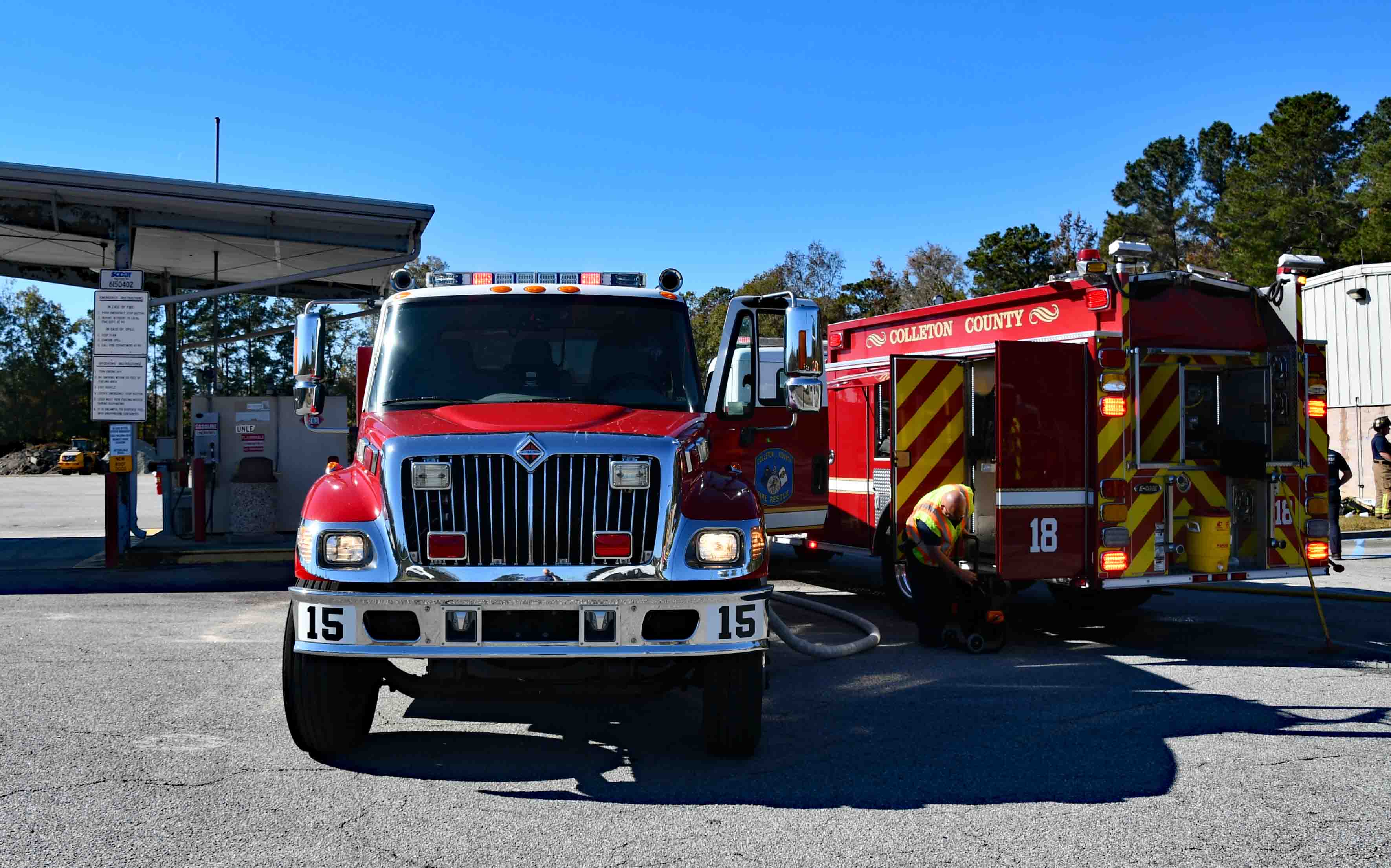 14/November/2025 - Structure Fire - "A" Shift Incident # 25-09084 - An office at the SCDOT facility located at 22575 Lowcountry Hwy in the Ruffin Community, received substantial damage from a fire Friday afternoon 14-Nov. At 12:03, an alert passing motorist noticed smoke coming from the building and reported it to 9-1-1. Engine 18 arrived minutes later to find smoke coming from the eaves of the metal office building. Firefighters deployed one handline and forced entry into the building. They quickly extinguished the fire inside the structure. It appears the fire started in the area of an exhaust fan located in the ceiling of a bathroom. The fire burned the ceiling and spread to the roof. Units were on the scene for two hours. No one was at the office when the fire was reported and no one was injured. Engine 7, Engine 18, Tender 7, Tender 15, Tender 18, Tender 26, Medic 7, Medic 18 and Battalion 1 responded. Battalion Chief Scott O'Quinn served as Incident Commander. |