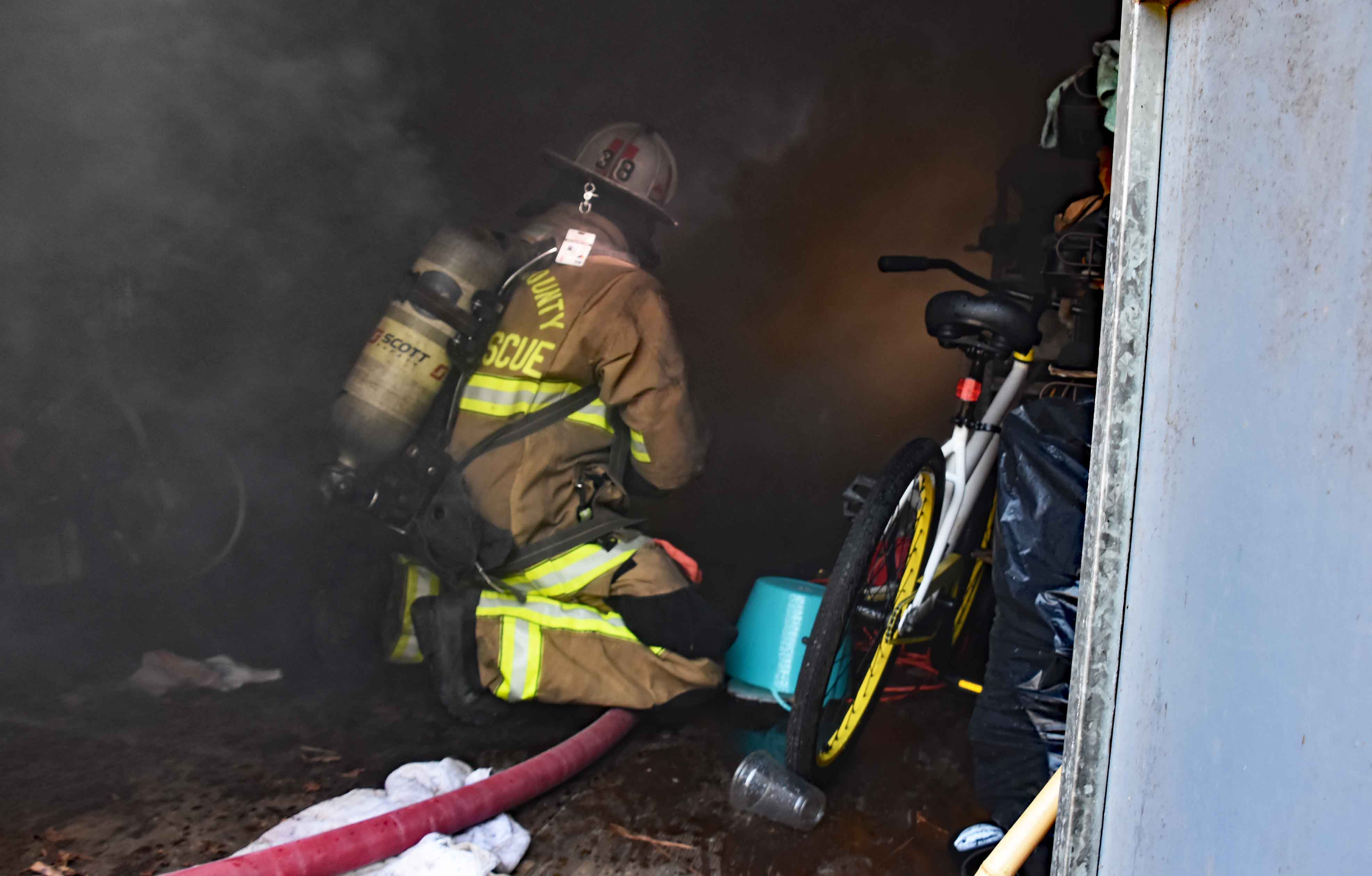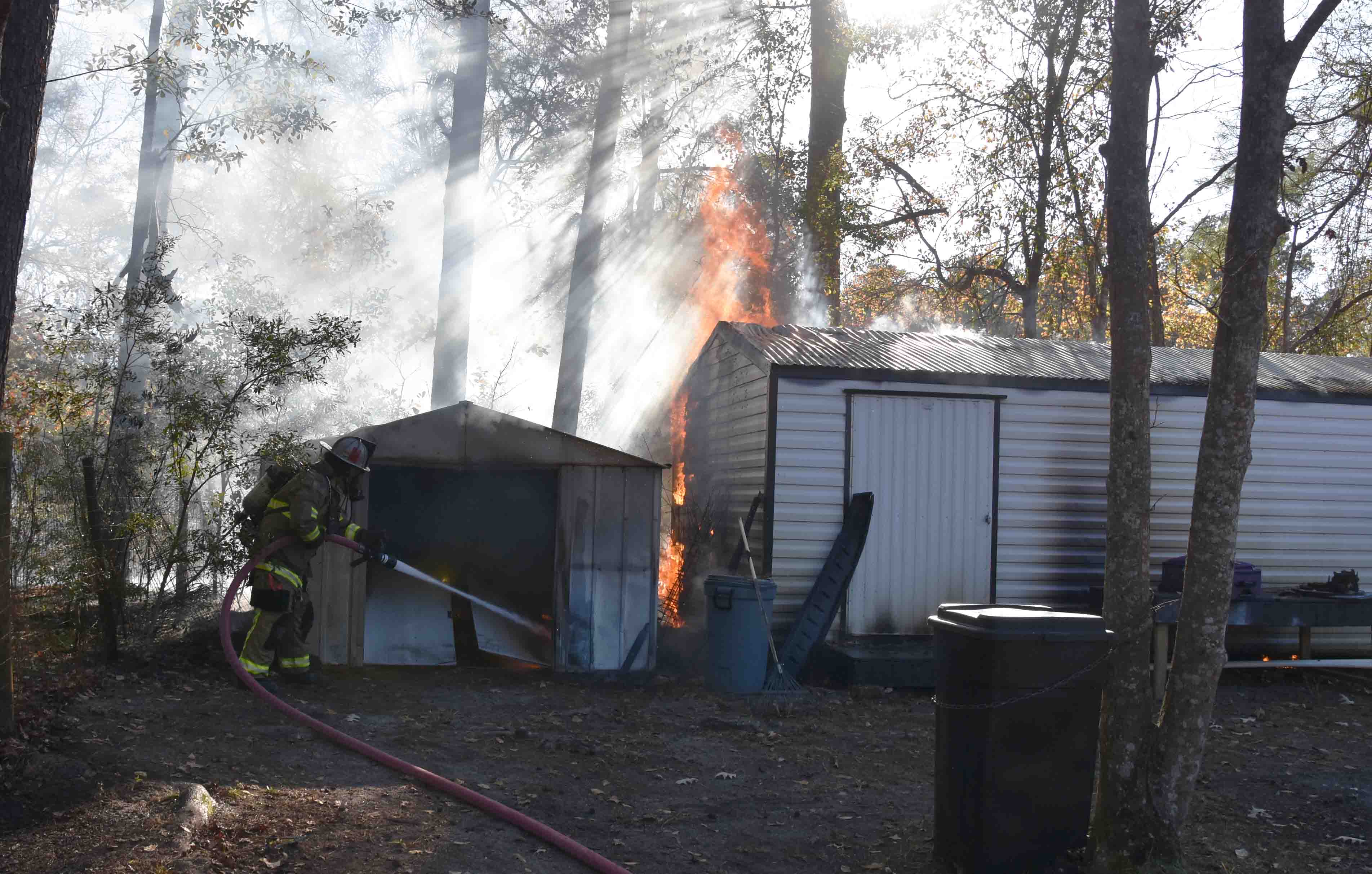23/December/2025 - Woods and Building Fire - "C" Shift Incident 25-10156 - An unattended trash fire spread to nearby woods and ignited two storage buildings in the 500 block of Sixth Street Tuesday afternoon 23-Dec at 14:40. Engine 19 arrived to find two storage buildings burning and deployed multiple handlines to extinguish the fires. The smaller metal building and its contents were destroyed. The larger wooden building was heavily damaged but Firefighters were able to stop the spread of the fire and saved much of the contents. They also stopped the spread of the woods fire. No injuries were reported in the incident. Fire-Rescue units were on the scene for about two hours. Engine 19, Tender 19, Medic 19, Battalion 1 and Car 118 responded. Battalion Chief Chris Jones served as Incident Commander. Photos by Harold Buzzell |