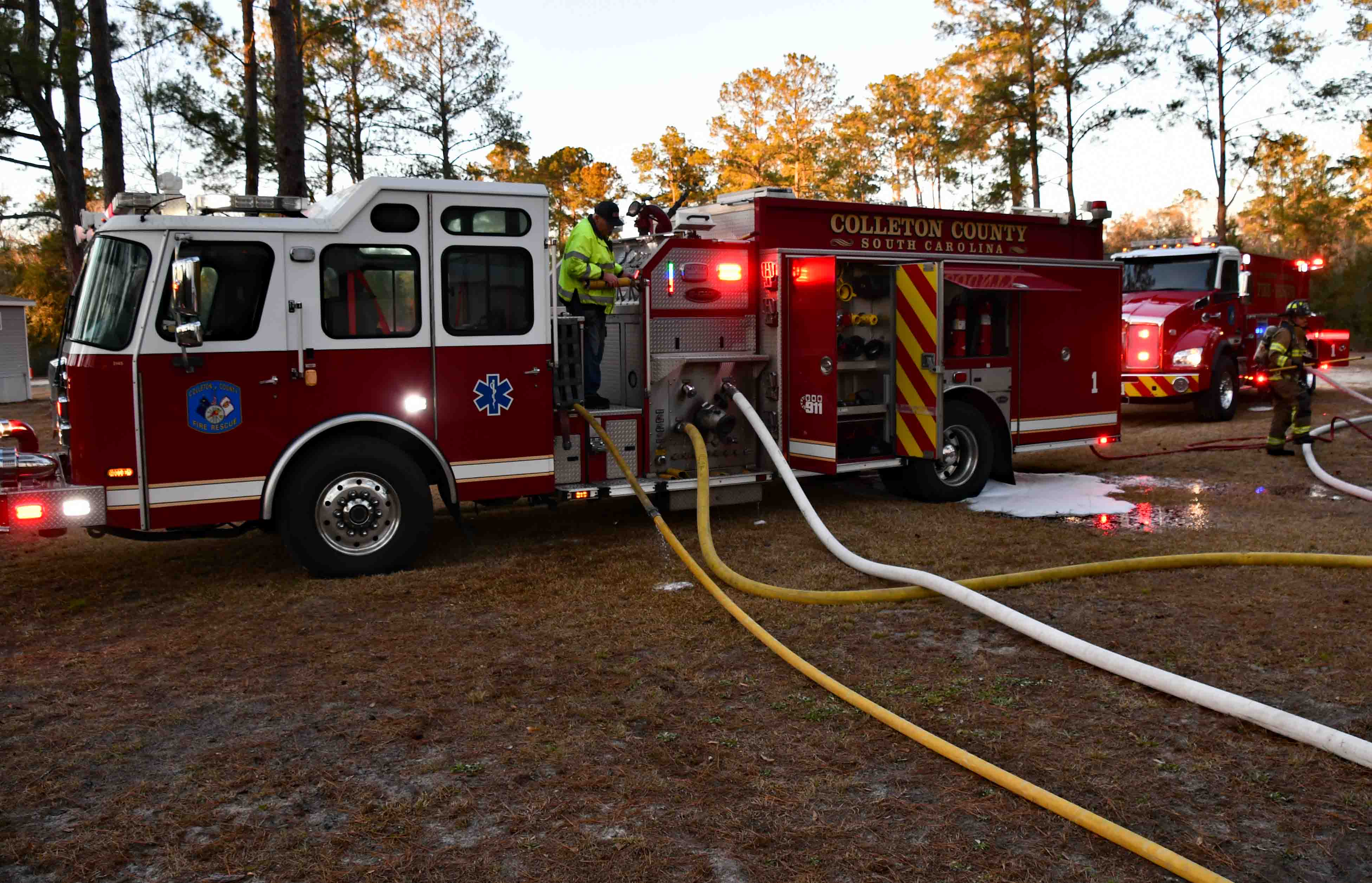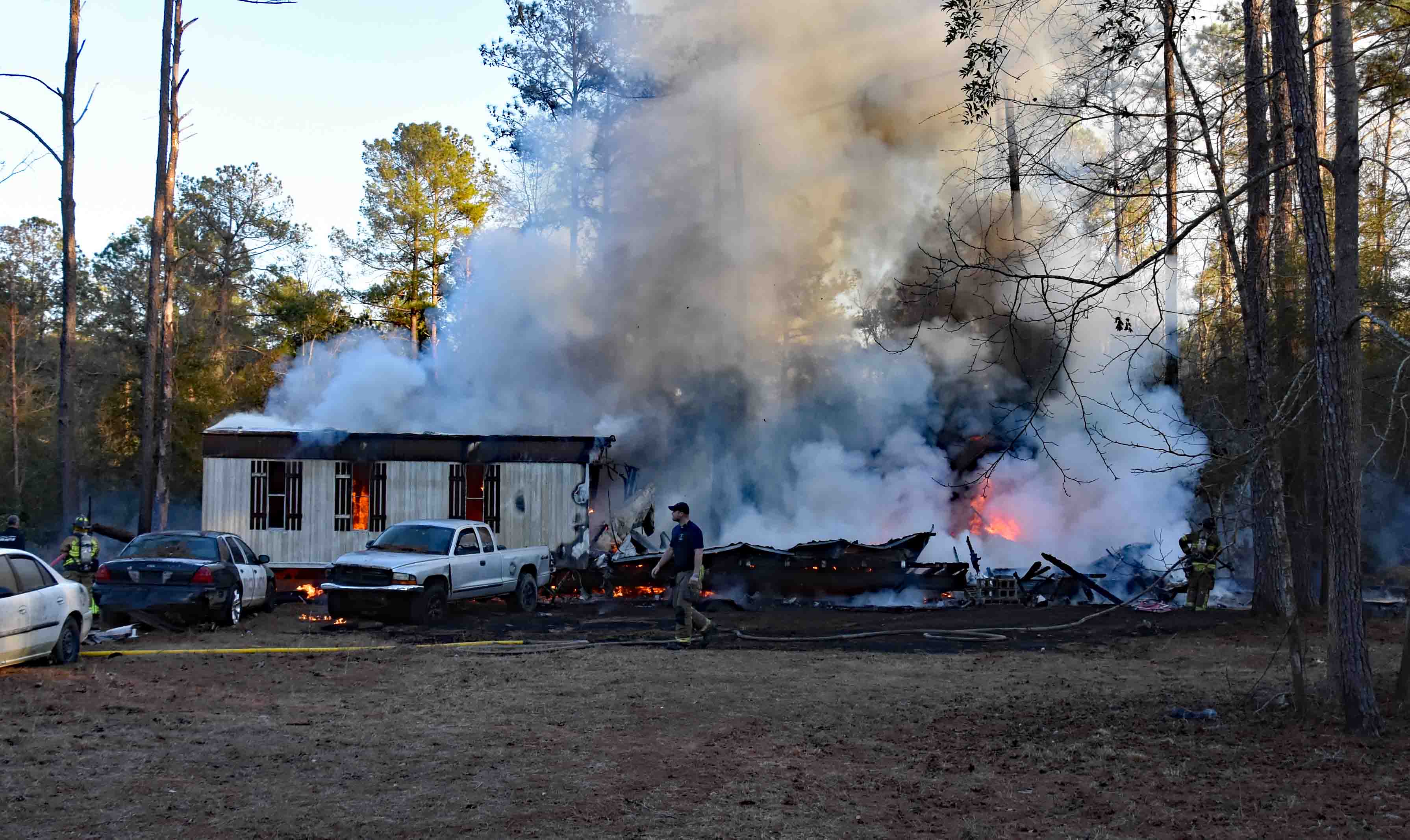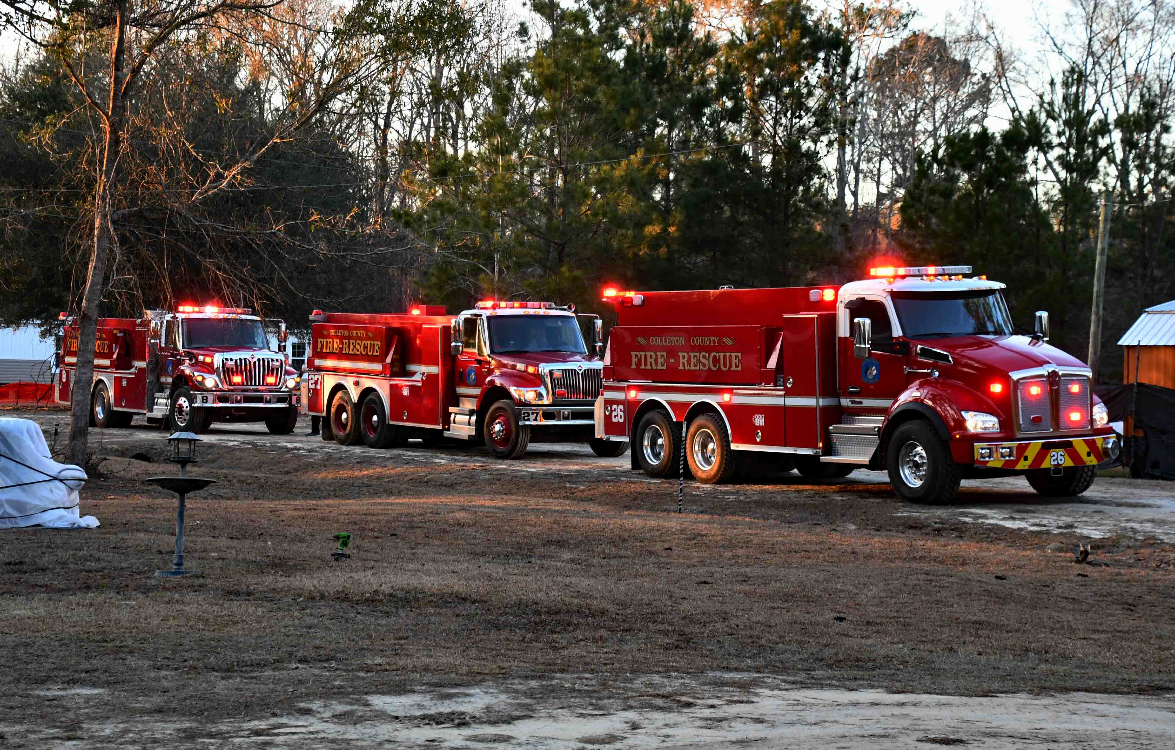 07/February/2026 - Structure-Woods Fire - "C" Shift Incident # 26-01051 - A single wide mobile, a vehicle and approx. 1-1/2 of woods was destroyed in an afternoon fire in the 200 block of Dicks Hill Road Saturday 07-Feruary at 17:12. Engine 1 arrived to find the mobile home approximately 75% involved and half of the structure had already collapsed. The surrounding woods and a Jeep were also on fire. Two other vehicles were also damaged from heat. Firefighter-Paramedics deployed three handlines to extinguish the fires. Tenders supplied water for the firefighting effort. Crews had the bulk of the fire knocked down in about 20 minutes, but were on the scene for two hours performing overhaul. No one was at home when the fire occurred. The fire is believed to have started from an unattended burn barrel next to the mobile home. Dry conditions and light winds spread the fire. Engine 1, Engine 27, Tender 1, Tender 8, Tender 19, Tender 26, Tender 27, Medic 1, Medic 19 and Battalion 1 responded. Captain Matt Smart served as incident Commander. Photos by Harold Buzzell |