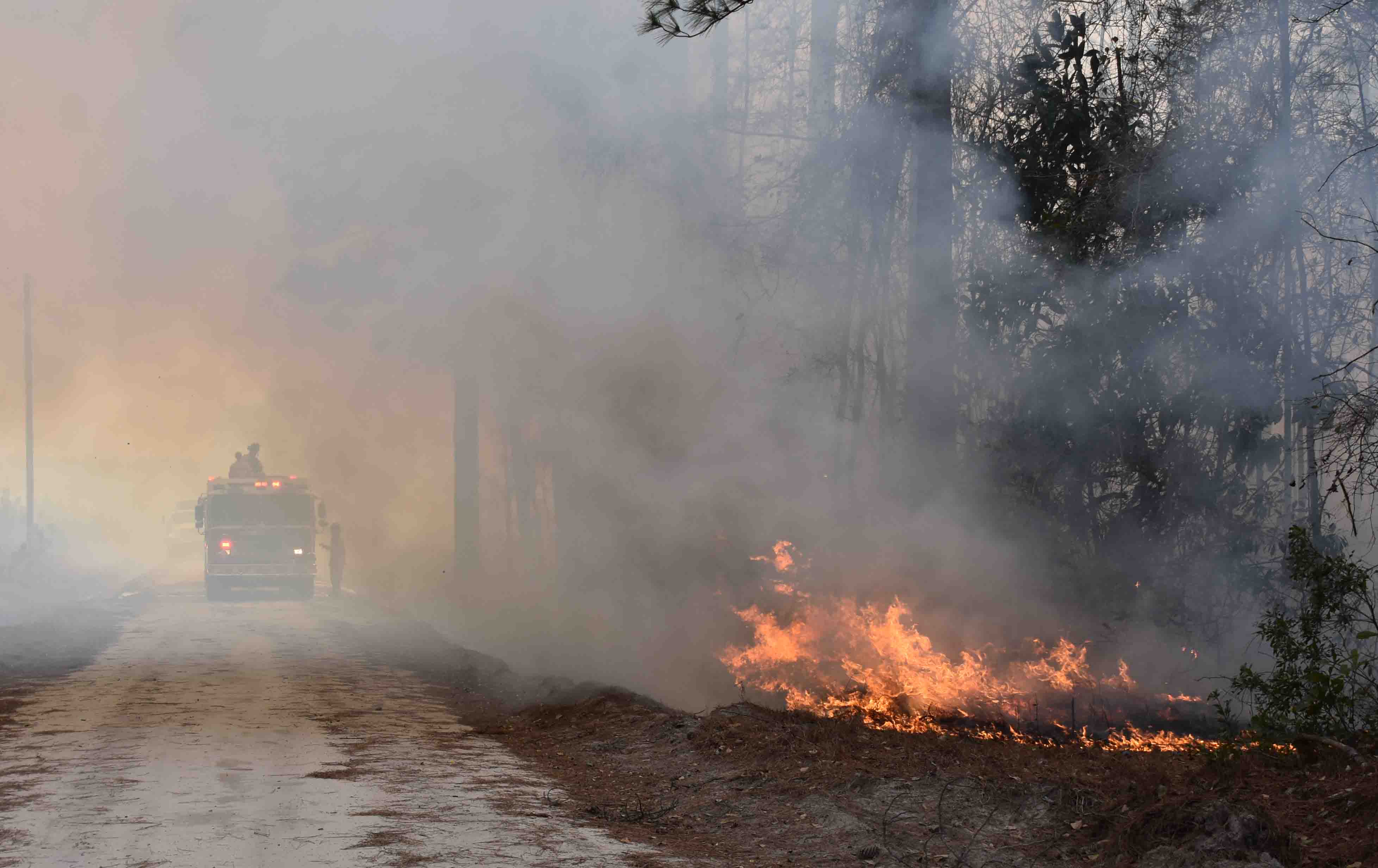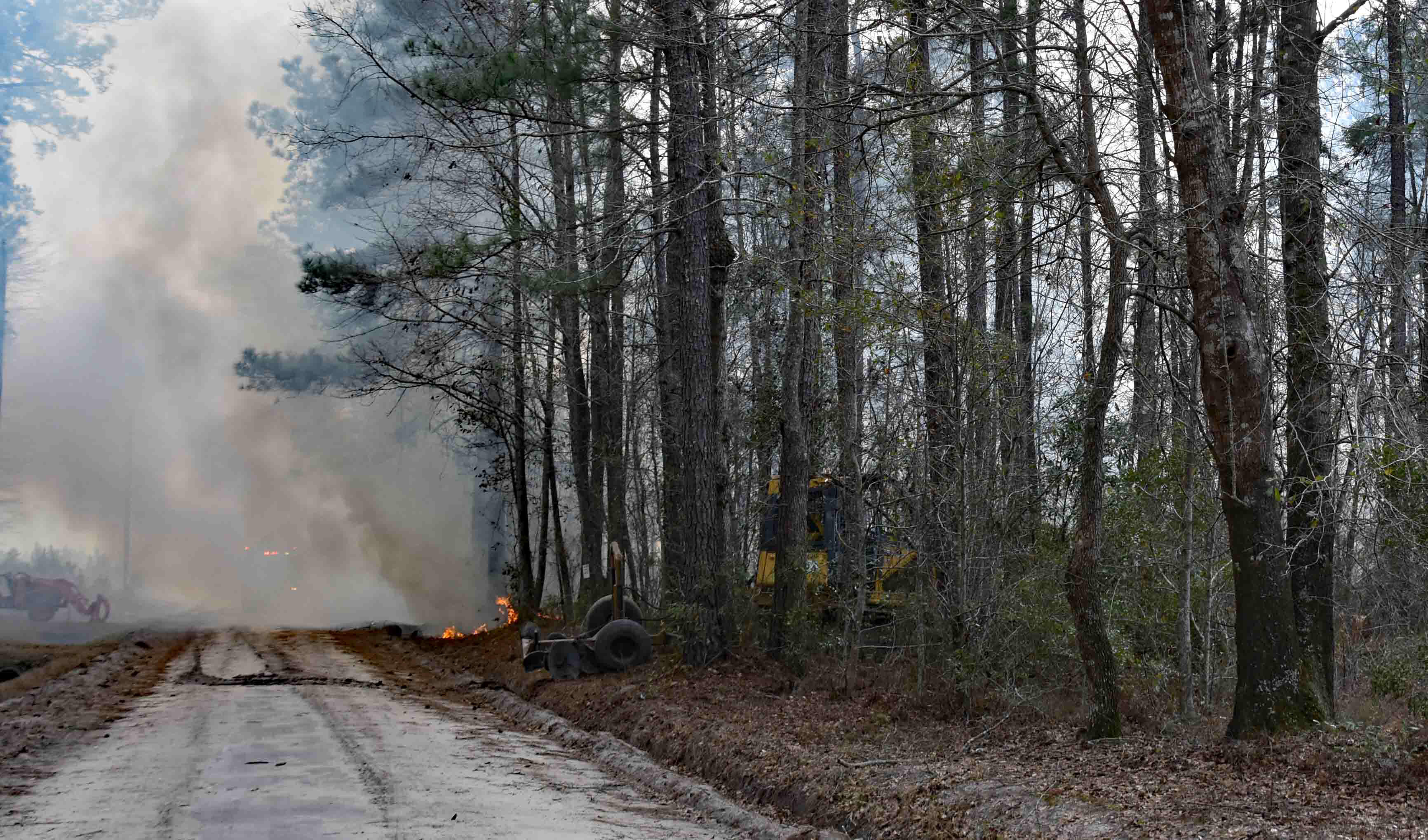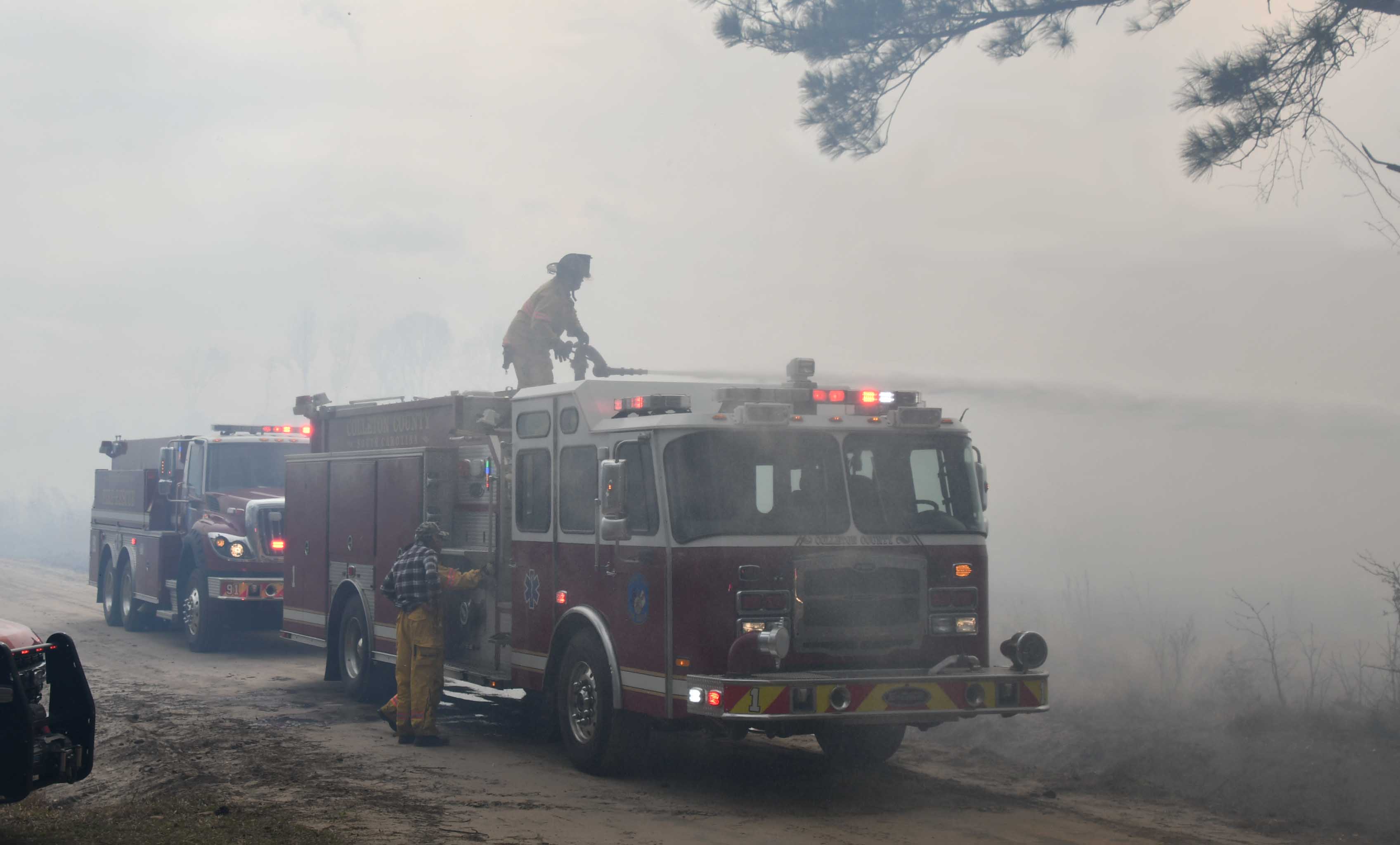25/February/2026 -20-Acre Woods Fire - "C" Shift Incident # 26-01583 - Firefighters worked for three hours to contain an approximately 20 acre woods fire in the 16700 block of Sniders Hwy (SC Hwy 63) Wednesday afternoon 25-Feb. The initial incident was reported to 9-1-1 at 13:12. Engine 15 arrived a short time later to find the rapidly spreading woods fire driven by high winds that endangered several homes in the area. The fire spread to nearby Murdaugh Ave, endangering additional homes. Engine 15 requested additional resources twice and two tractors from the Forestry Commission. Fire Apparatus was positioned near several residences to protect the homes from the fire. Firefighters used Brush Trucks, Deck Guns, multiple handlines and hand tools to contain the fire. Both Forestry Tractors plowed fire lines around the perimeter of the fire. No homes were damaged during the incident. The cause of the fire is believed to be a trash pile that was spread by the high winds. Engine 1, Engine 4, Engine 15, Engine 18, Tender 15, Tender 18, Tender 23, Brush 8, Brush 27, Medic 26, Battalion 1, C103, Car 112 and Car 115 responded. Captain Matthew Owen Williams II served as incident Commander. Photos by Harold Buzzell |