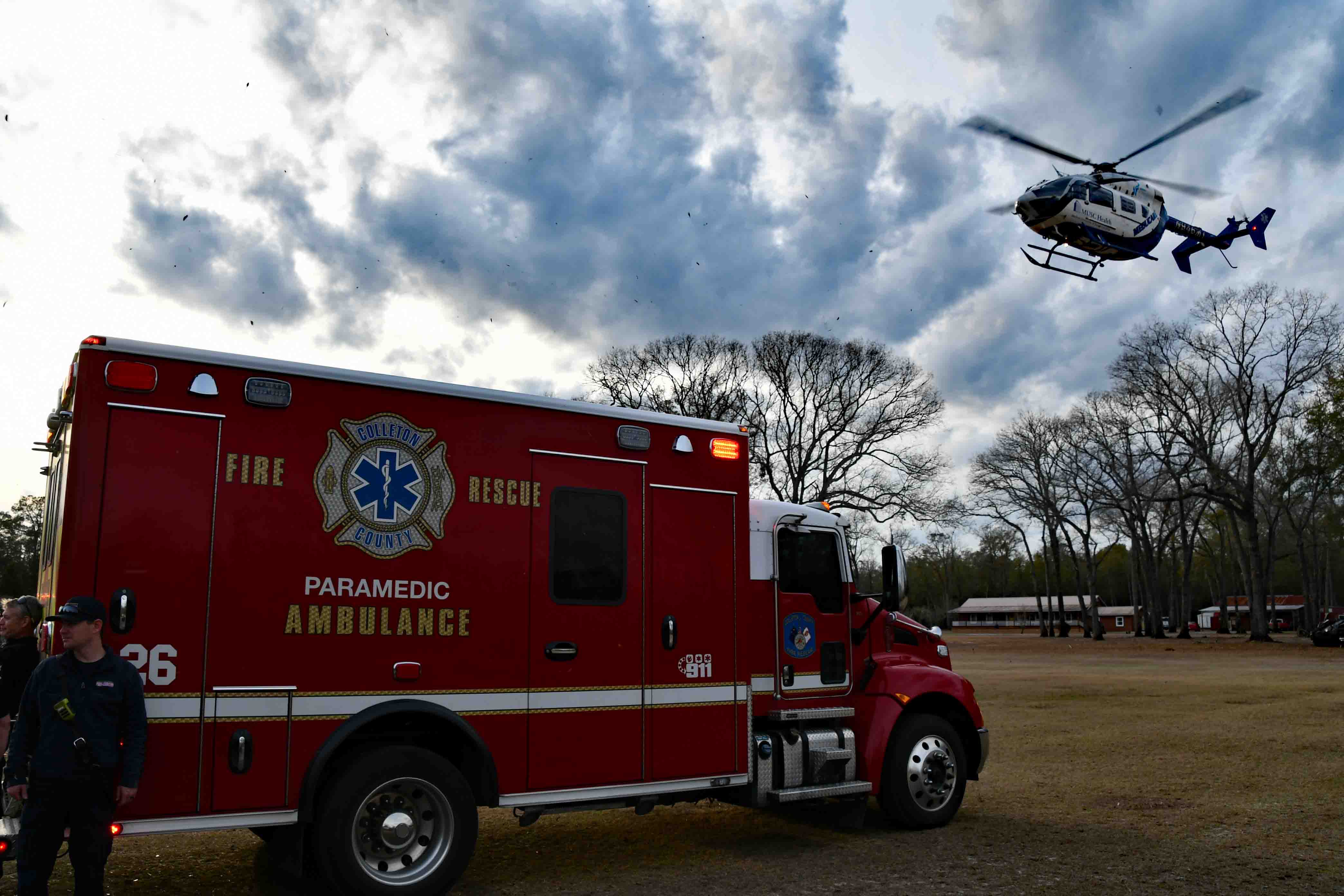25/February/2026 - ATV Accident with Air Evac - "C" Shift Incident # 26-01596 - A 16 year old suffered traumatic injuries in an ATV accident Wednesday afternoon 25-Feb at 16:27. The accident occurred at a residence in the 700 block of Haymakers Lane off of Jones Swamp Road. The caller to 9-1-1 reported the large ATV rolled over onto the juvenile. Firefighter-Paramedics treated the teenager at the scene and requested a medical helicopter to respond. Meducare flew to the location and landed in a field at accident site. The patient was transferred to the Flight crew, then flown to the Shaun Jenkins Children's Hospital at MUSC in Charleston. Engine 26, Medic 26, Battalion 1 and Car 112 responded. Battalion Chief Chris Jones served as Incident Commander. |