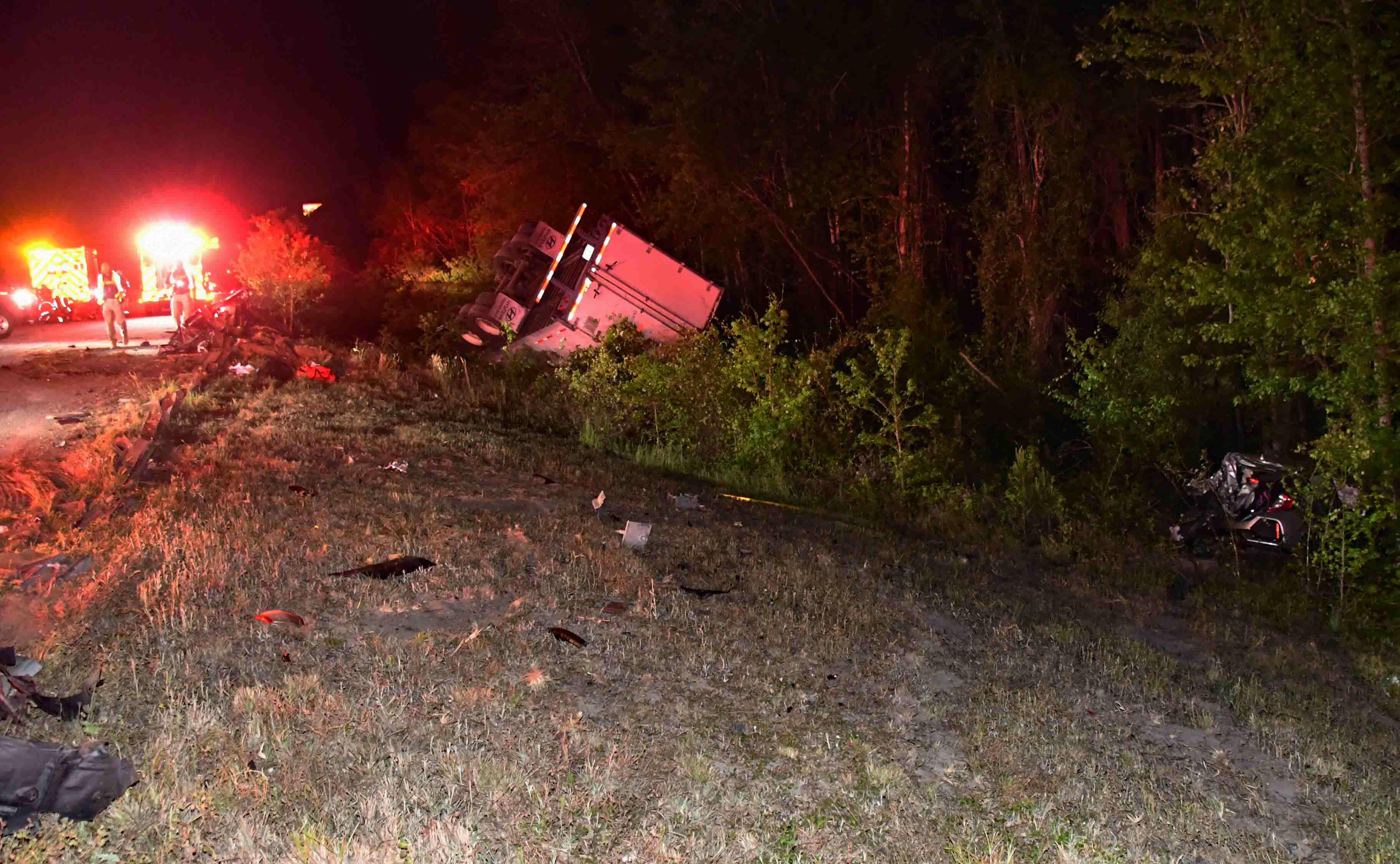 04/April/2026 - MVC with Air Evac - "B" Shift Incident # 26-02751 - Multiple people were injured when two parked vehicles were struck by a semi-truck near the 55 mile marker northbound Saturday morning 04-April at 05:04. The passenger cars were parked in the breakdown lane near the bridge entering the Great Swamp. They were struck in the rear by the northbound semi-truck. One vehicle was thrown into the woods, while the other was pushed into the median side lane on the bridge. Both vehicles contained members of the same family and received heavy damage. The adult was standing outside of the vehicle when it was struck. The patient suffered multiple extensive injuries and was found unconscious at the scene. The minor was inside the back seat of one of the passenger cars and received multiple injuries. Two other patients, in separate vehicles, received non-life threatening injuries. The semi-truck struck the bridge and sent into the river beneath the bridge. The cab filled with water. The driver was not injured and was able to safely exit the cab. Firefighters assisted the driver up the embankment. Firefighter-Paramedics began treating the critically injured patient and requested a medical helicopter to respond to the scene, as well as an additional Fire-Rescue ambulance and Engine. All patients were treated at the scene. CARE Flight landed on the bridge and flew the patient to the Trauma Center at HCA Trident Hospital in North Charleston. Fire-Rescue Medic 26 transported the children and the adult to the Shawn Jenkins Children's Trauma Center at MUSC. I-95 northbound was closed for several hours until the accident could be cleared. All traffic was rerouted through Walterboro for most of the Saturday morning. The accident is being investigated by the SC Highway Patrol. The Sheriff's Office assisted with traffic control. |