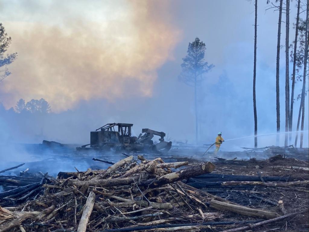 21/April/2026 - Logging Equipment / Woods Fire Incident# 26-03373 - Fire-Rescue responded to the 4000 Block of Sunrise Road for a reported Skidder Fire. Engine 7 arrived on scene minutes later and located a fully involved piece of logging equipment well off the roadway. Several other pieces of logging equipment were threatened due to a rapidly moving woods fire. Fire apparatus were not able to access the off road location due to cut logs and other debris. The South Carolina Forestry Commission was contacted and requested to send Forestry Firefighters equipped with plows. Crews deployed multiple supply and Crews deployed handlines to contain the fire, prevent further spread to adjacent logging materials and equipment, and provide structural protection to nearby residences. SCFC arrived on scene and deployed a plow. A line was cut to allow better access for firefighters to extinguish the equipment fire. Firefighters quickly extinguished the equipment fire and then provided assistance to the forestry firefighters. SCFC was able to secure a fire break to contain the fire. No homes were damaged during the fire. Phots by Fire-Rescue Commissioner Doug Mixson Jr. Engine 7, Engine 36, Tender 18, Tender 17, Brush 23, Medic 7, C103, Car 115, and Battalion 1 responded to the incident. Firefighter/EMT Dalton Sweatt served as the Incident Commander. |